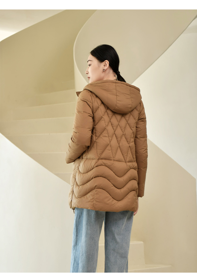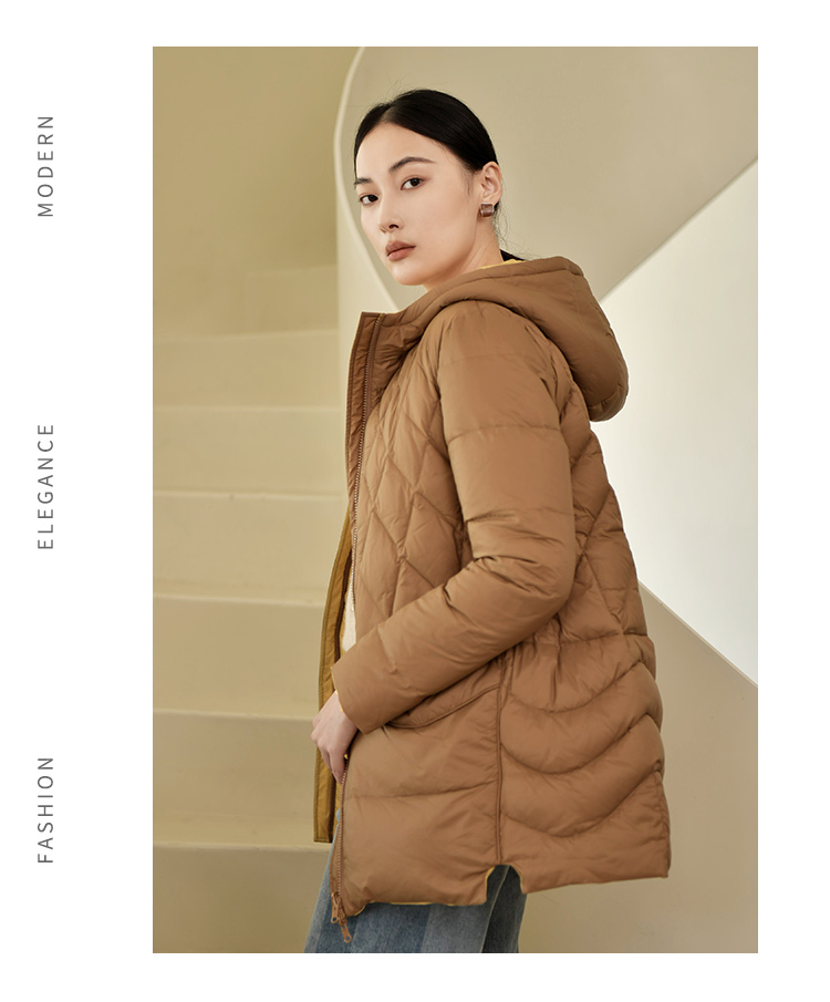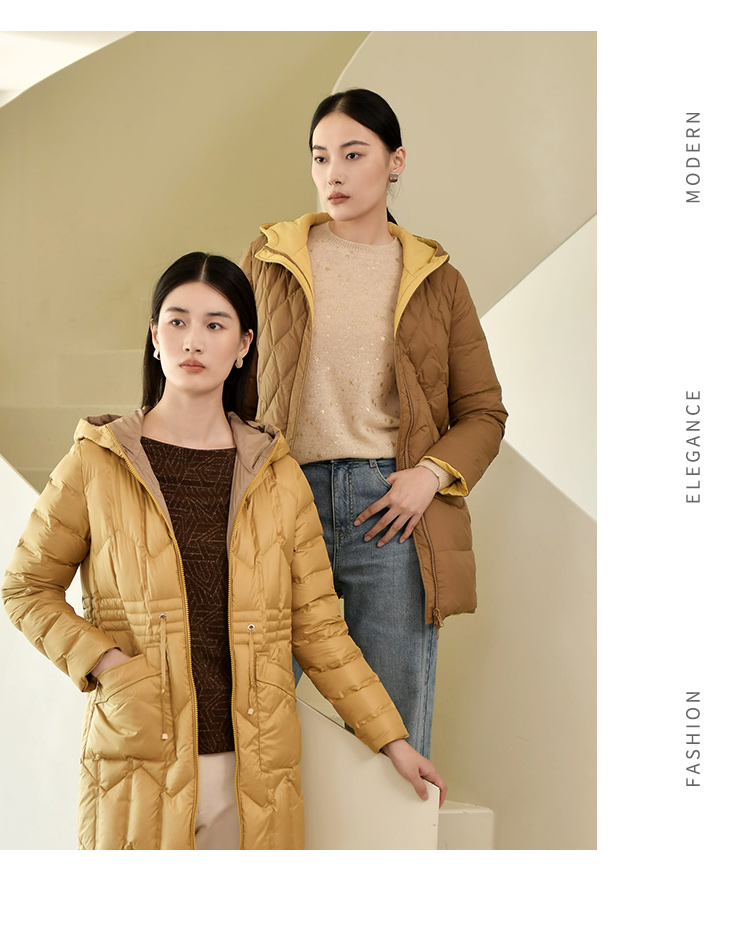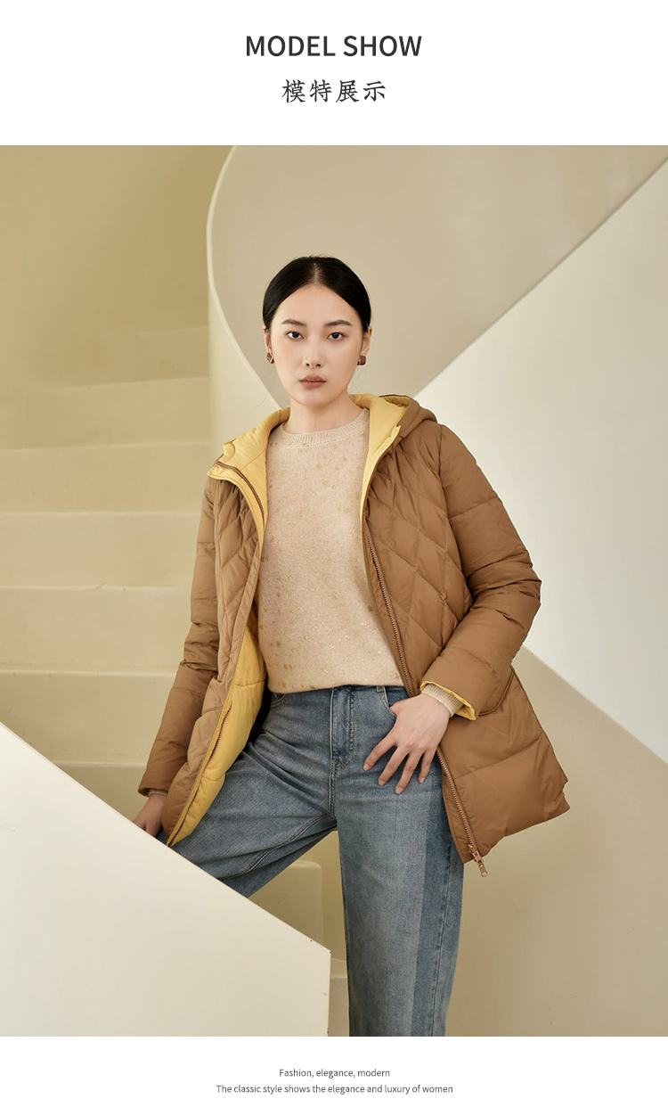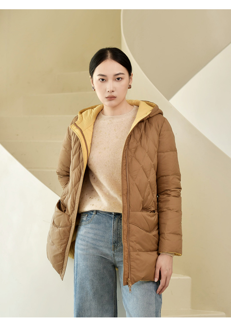 佐尔美冬季新款 气质连帽双面穿菱形格羽绒服女E24YY05