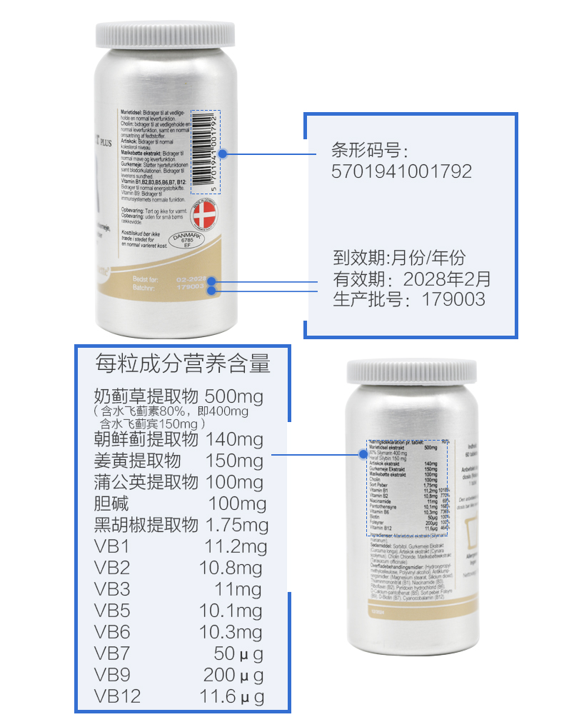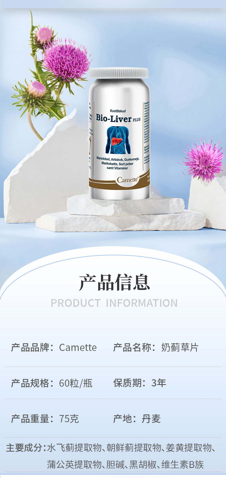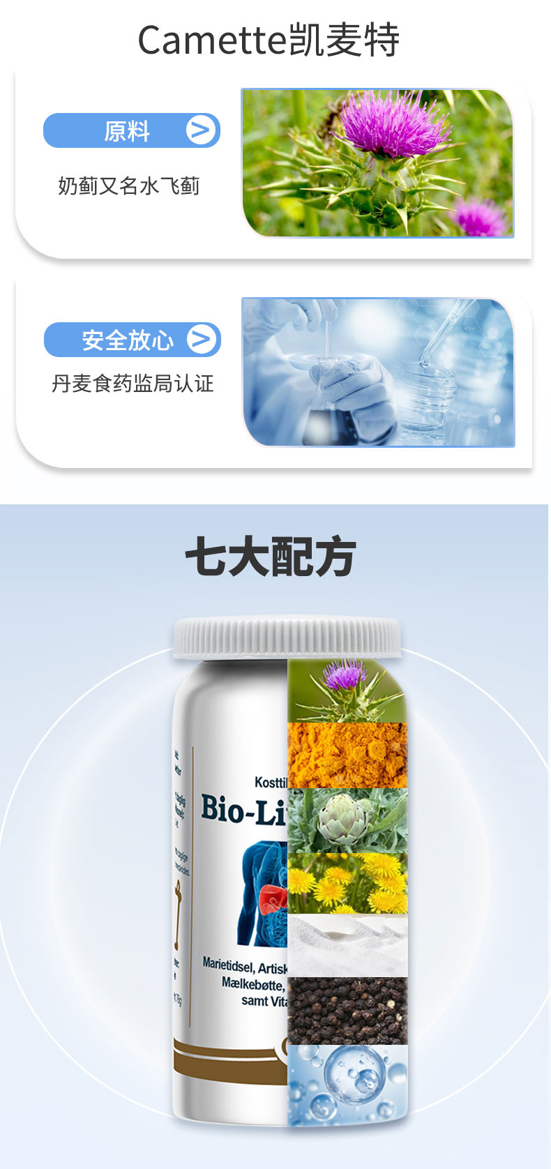 丹麦Camette凯麦特全新升级金装奶蓟草片 肝脏保养护熬夜解酒水飞蓟保健品