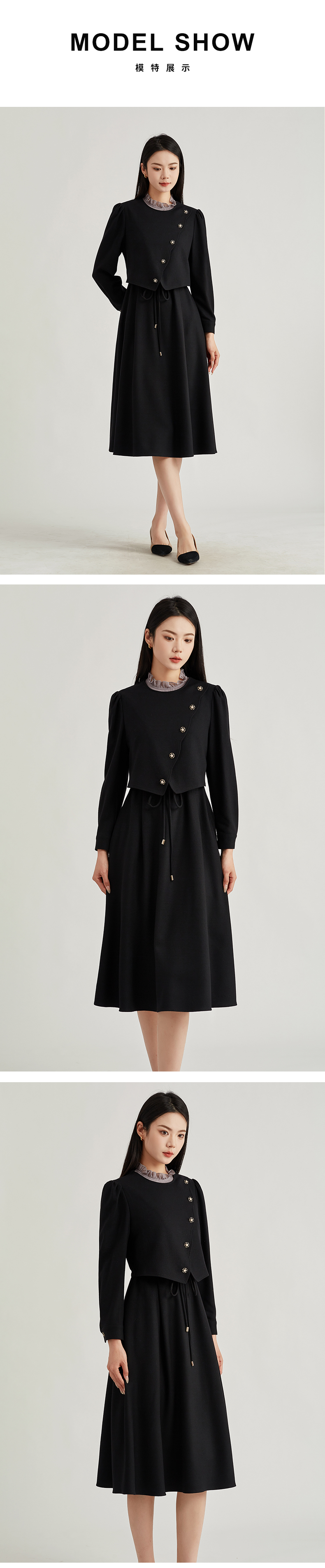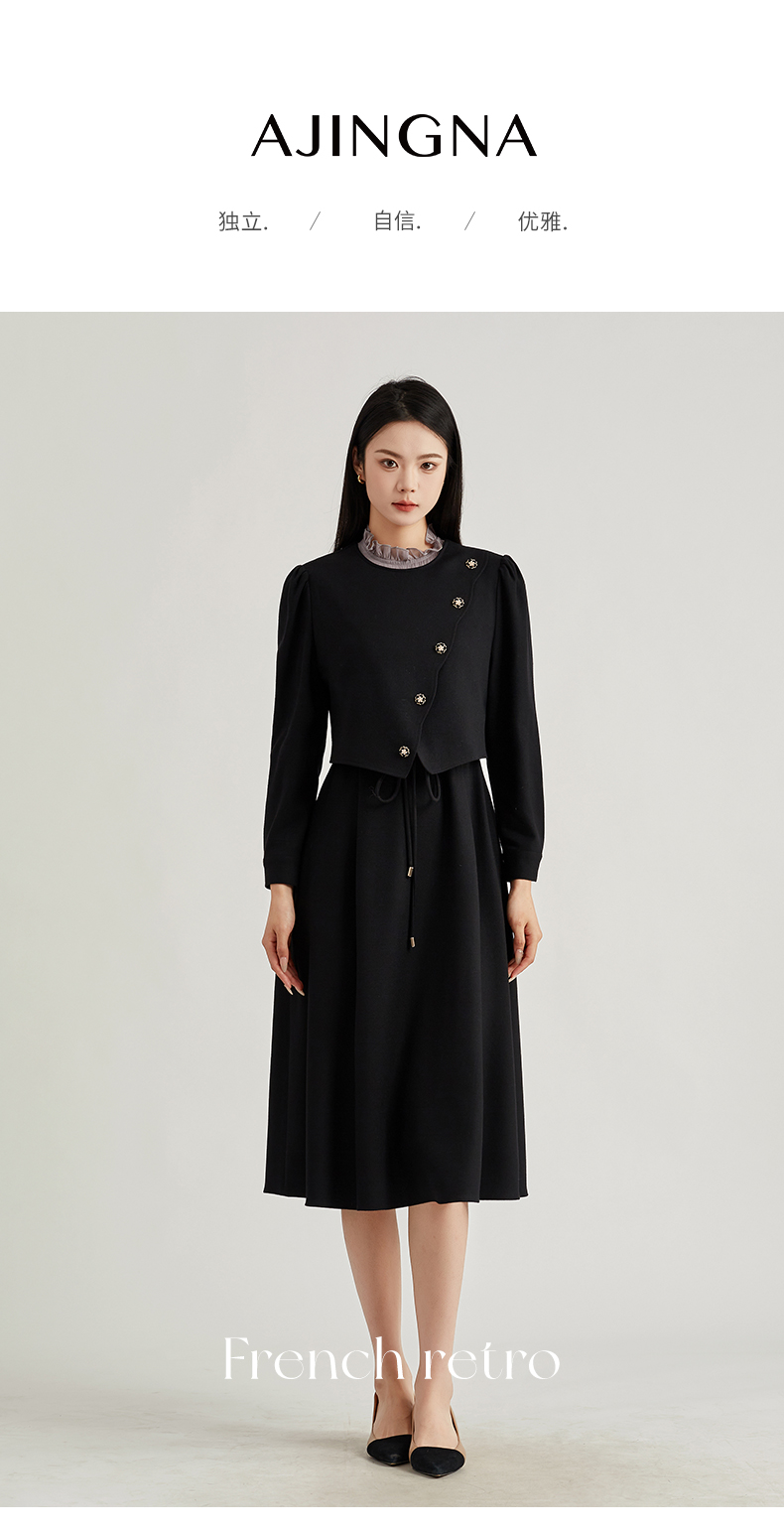 【商场同款】阿菁娜法式假两件拼接连衣裙A29C112052