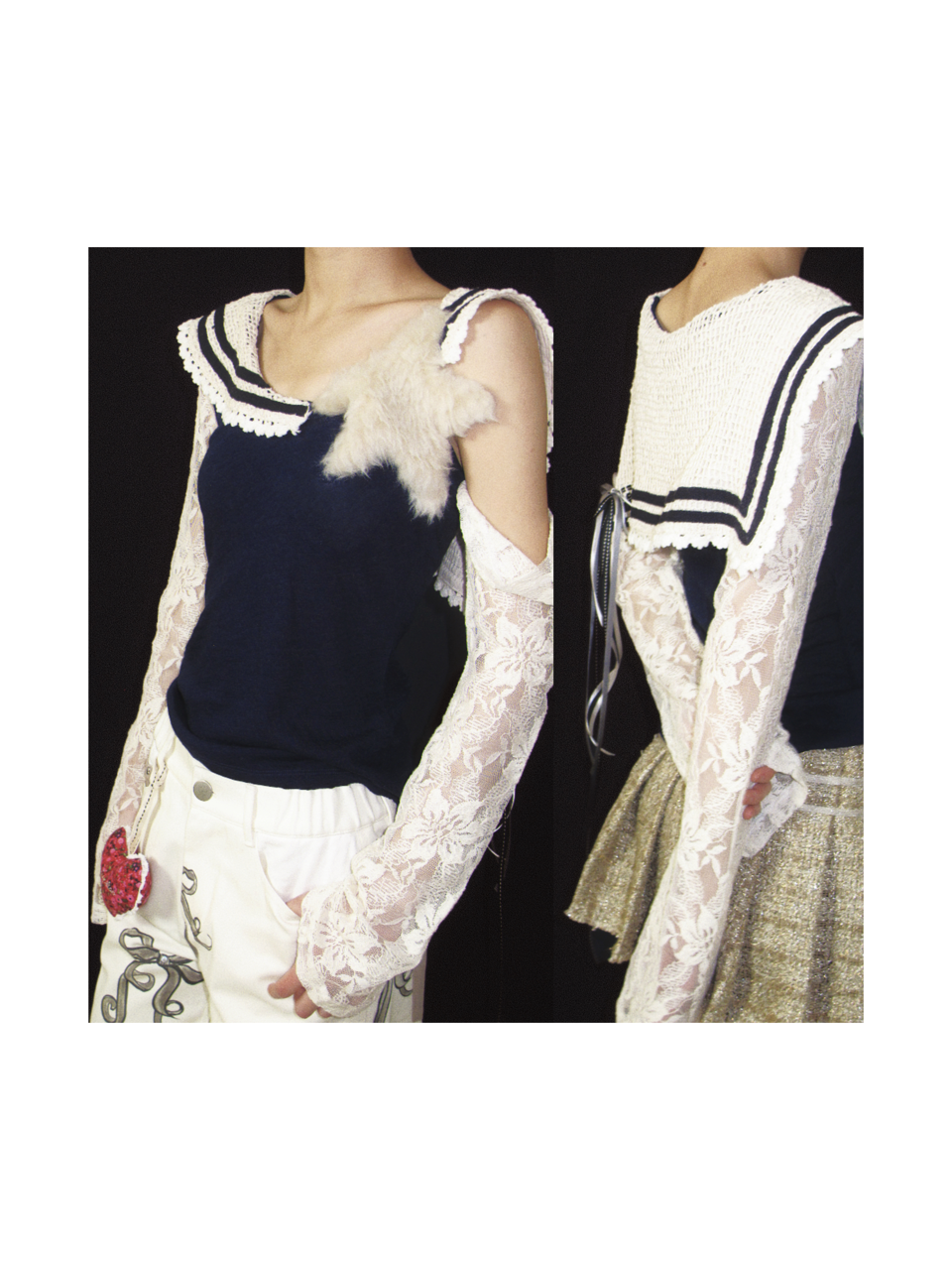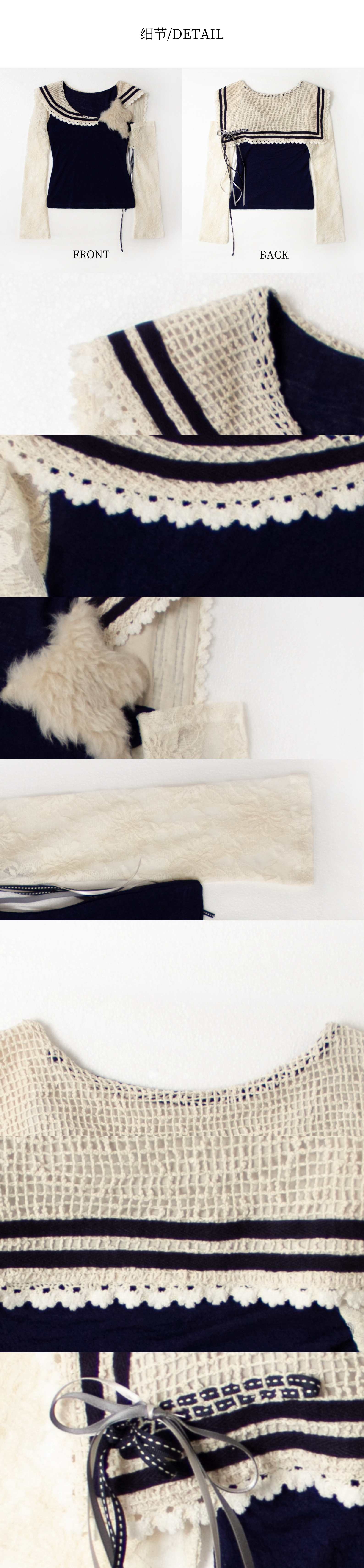 Kaiy Xiao 海月仙子 蕾丝长袖星星海军领上衣