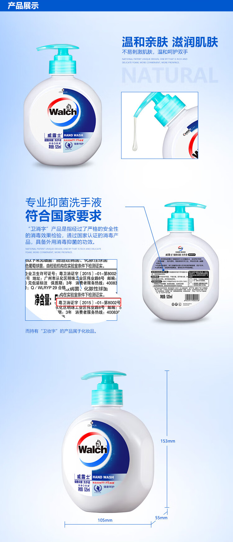 威露士健康抑菌洗手液丝蛋白525ml*3