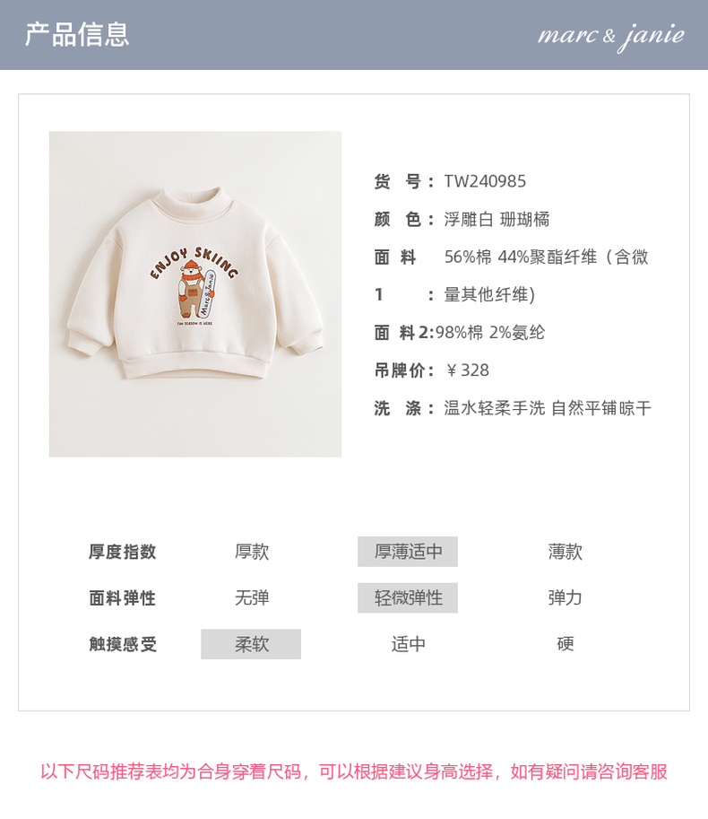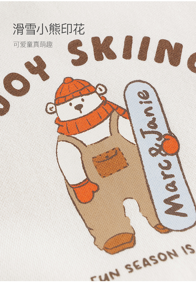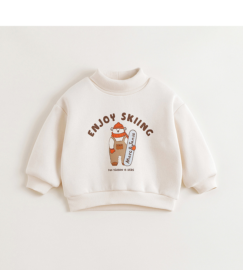 【抗静电】马克珍妮男童滑雪小熊加绒高领卫衣宝宝冬装新款240985