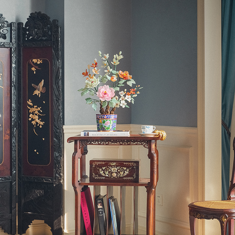 20世纪中国创汇时期出品牡丹花纹景泰蓝盆装饰「玉堂富贵」珍宝像生盆景