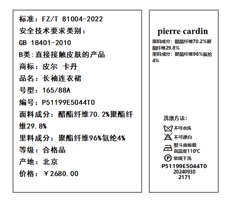 皮尔卡丹女装连衣裙P51199E5044T0