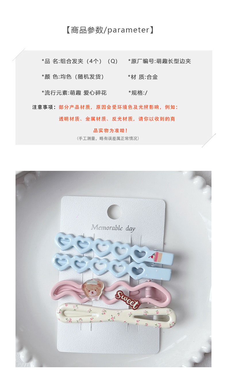 萌趣长型边夹组合发夹(4个)-纪念日百货门店同款169099051