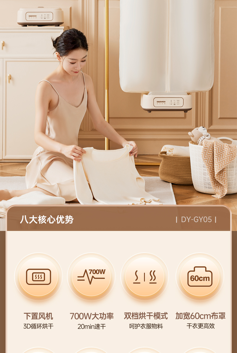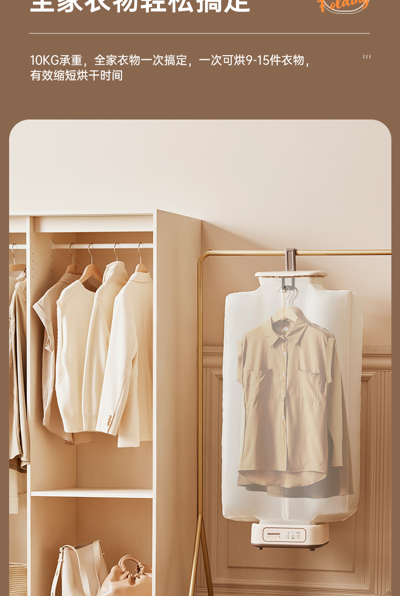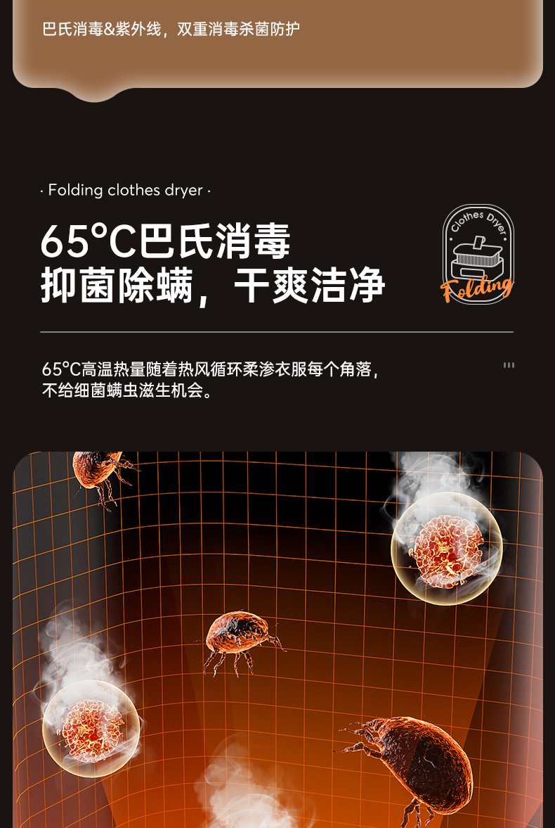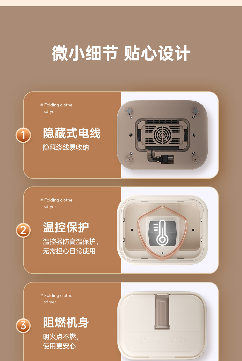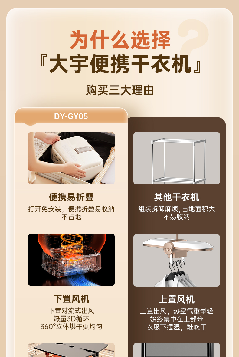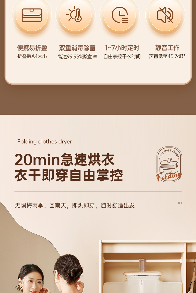 【 A4纸大小 干衣新体验】大宇折叠干衣机 加宽布罩 UV紫外65℃抑菌除螨 2档可调 3D循环烘干 1-7小时自由定时 轻音底噪 易折叠展开 出差/旅行可带
