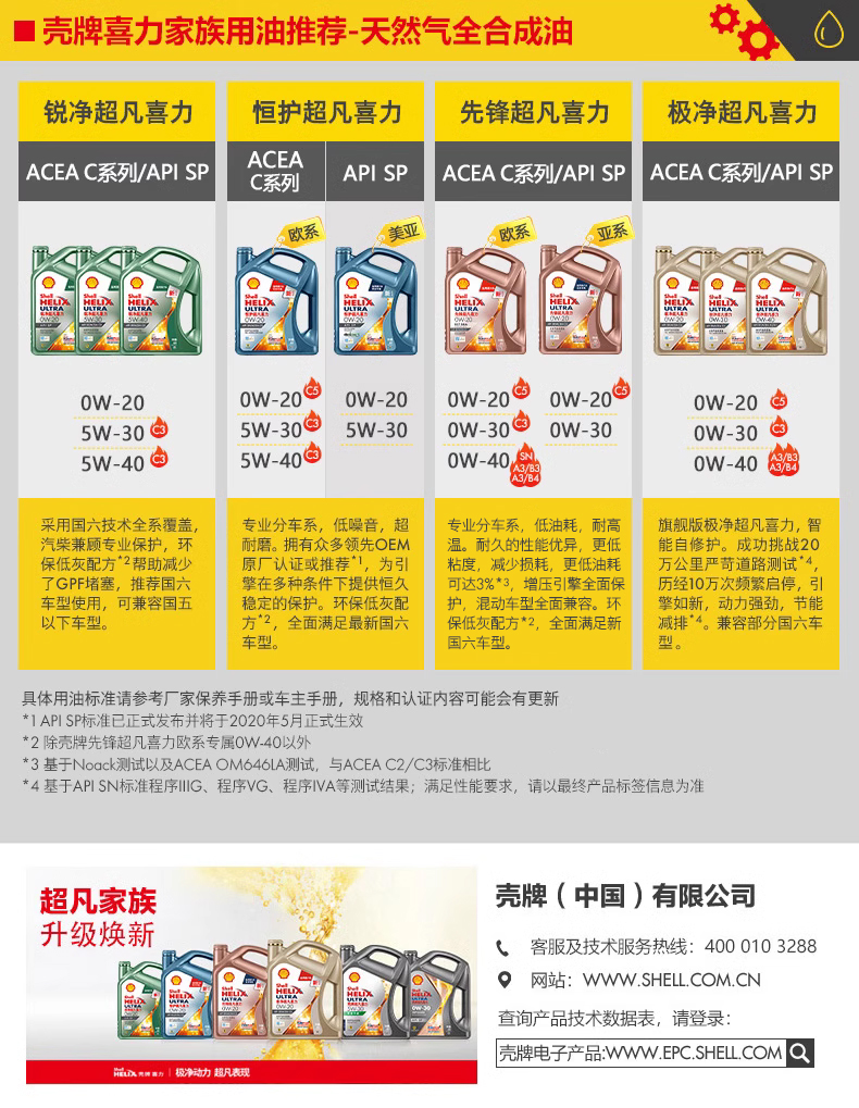 壳牌恒护超凡喜力欧系0W-20 API SN、ACEA C5全合成润滑油汽车机油正品SN/C5国六1L