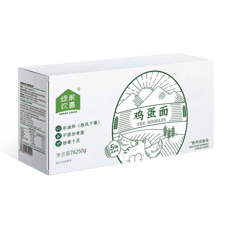 【促销装+赠1包到手250g*7包+赠密封袋1个】绿家欢喜鸡蛋面儿童方便面早餐面 高筋麦芯粉 Q弹劲道,耐煮不易坨 0农残小麦粉 添加5%无抗生素鸡蛋液国际食品标准认证 孩子老人都爱吃