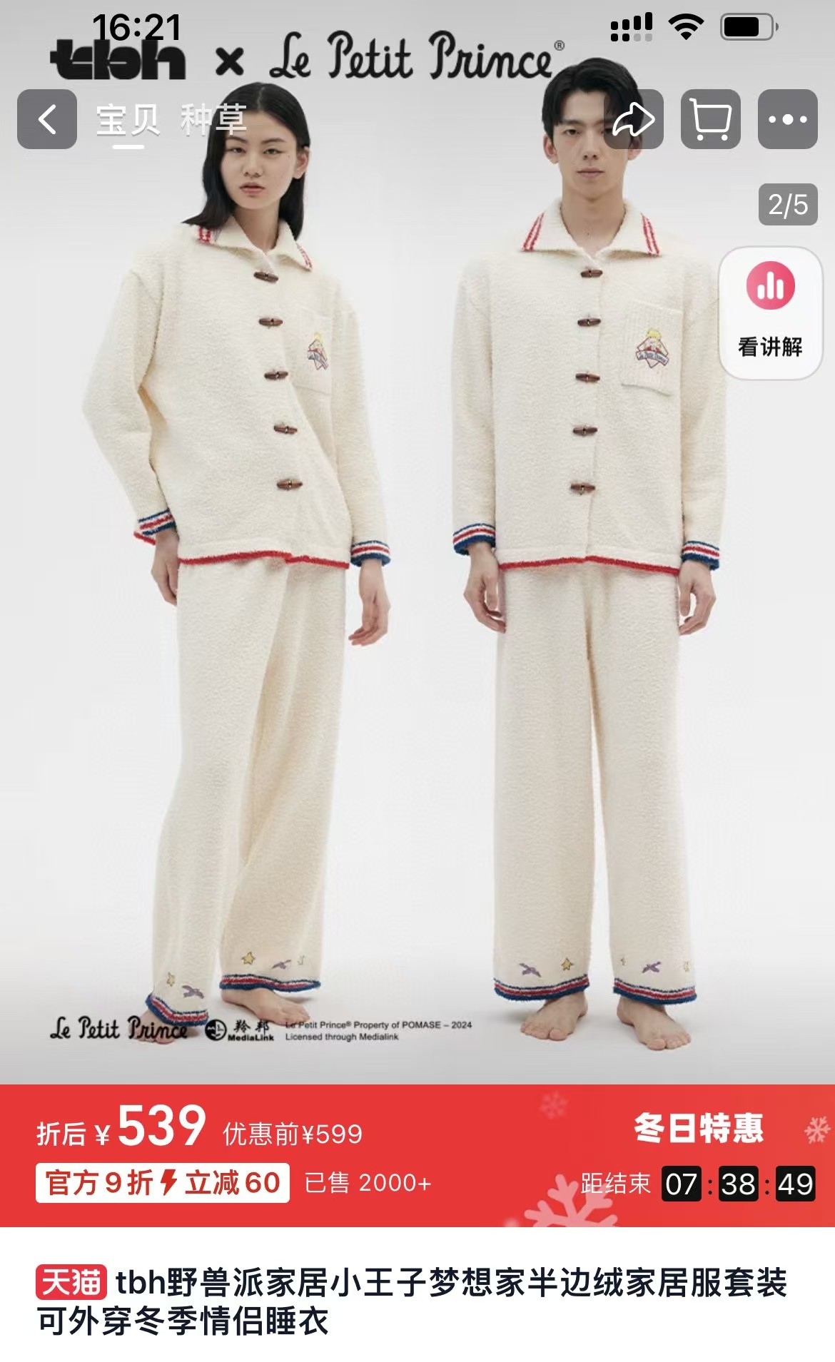 野兽派tbh小王子梦想家系列半边绒家居套装