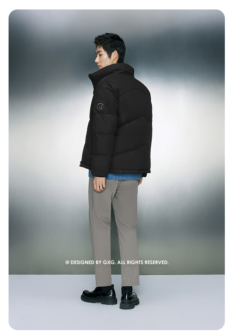 GXG男装 潮流暗纹压印羽绒服男短款宽松面包服保暖外套 冬季热卖羽绒服