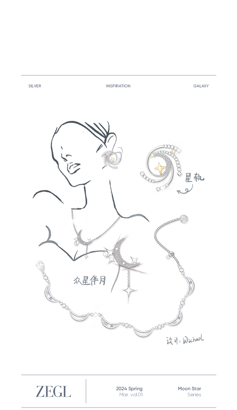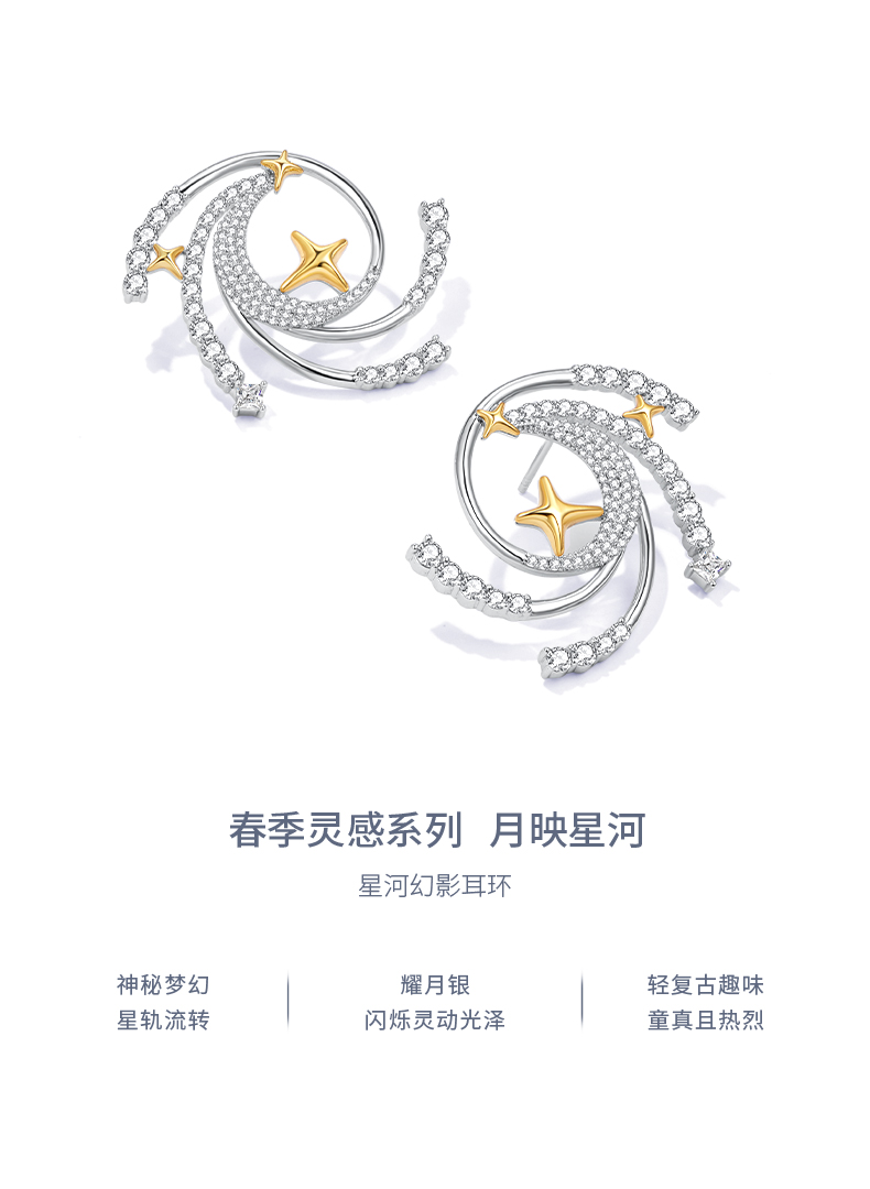ZEGL设计师月映星河系列星芒耳环女2024新款星星耳钉925银针耳饰