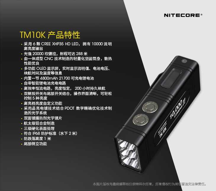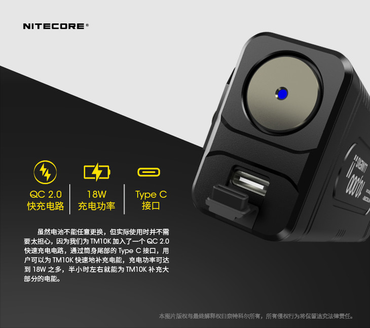 NITECORE奈特科尔TM10K强光高亮QC2.0快充手电筒
