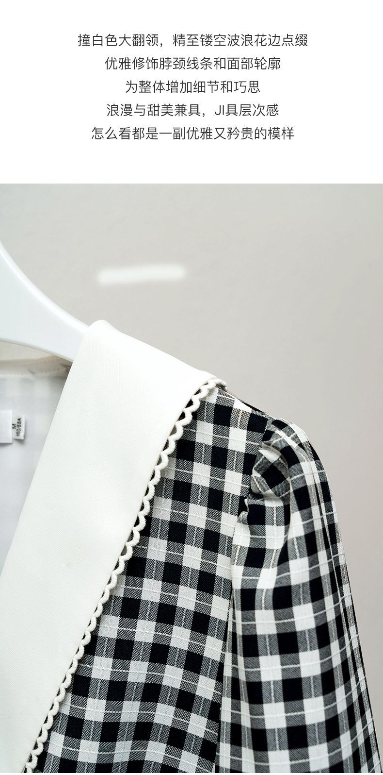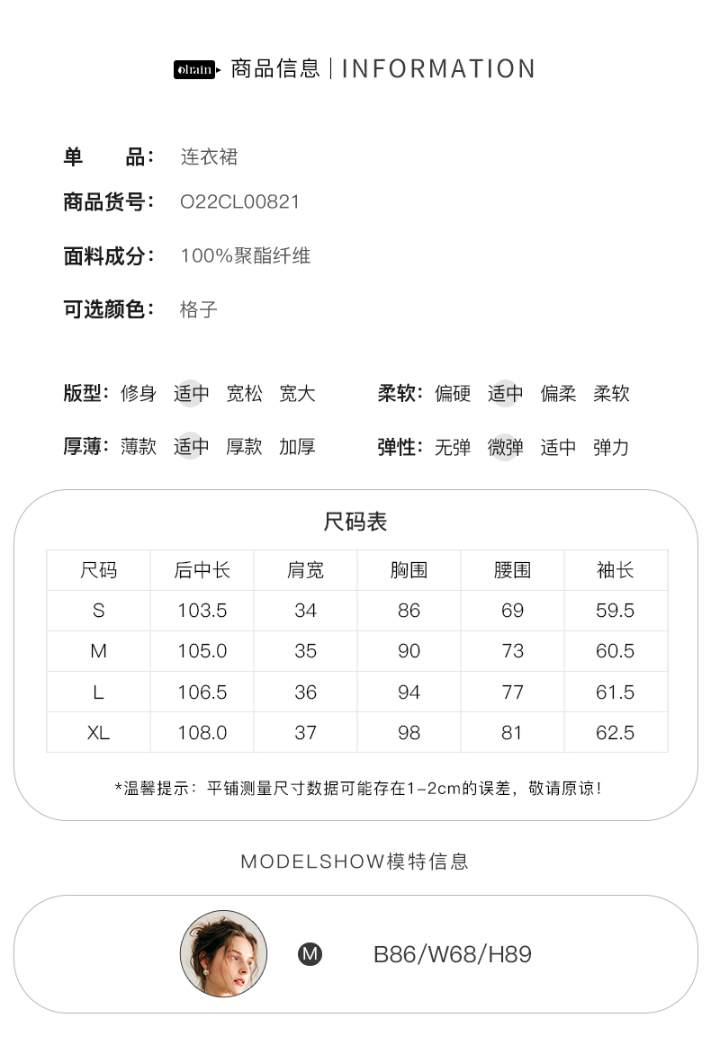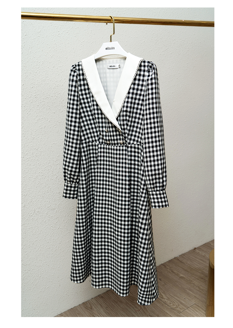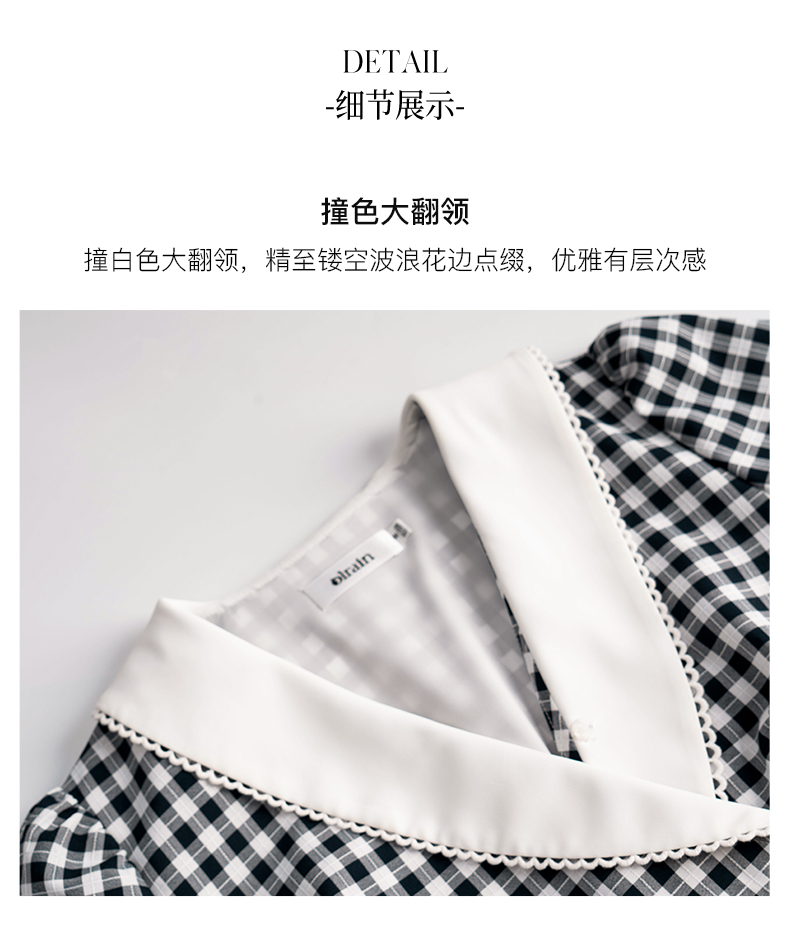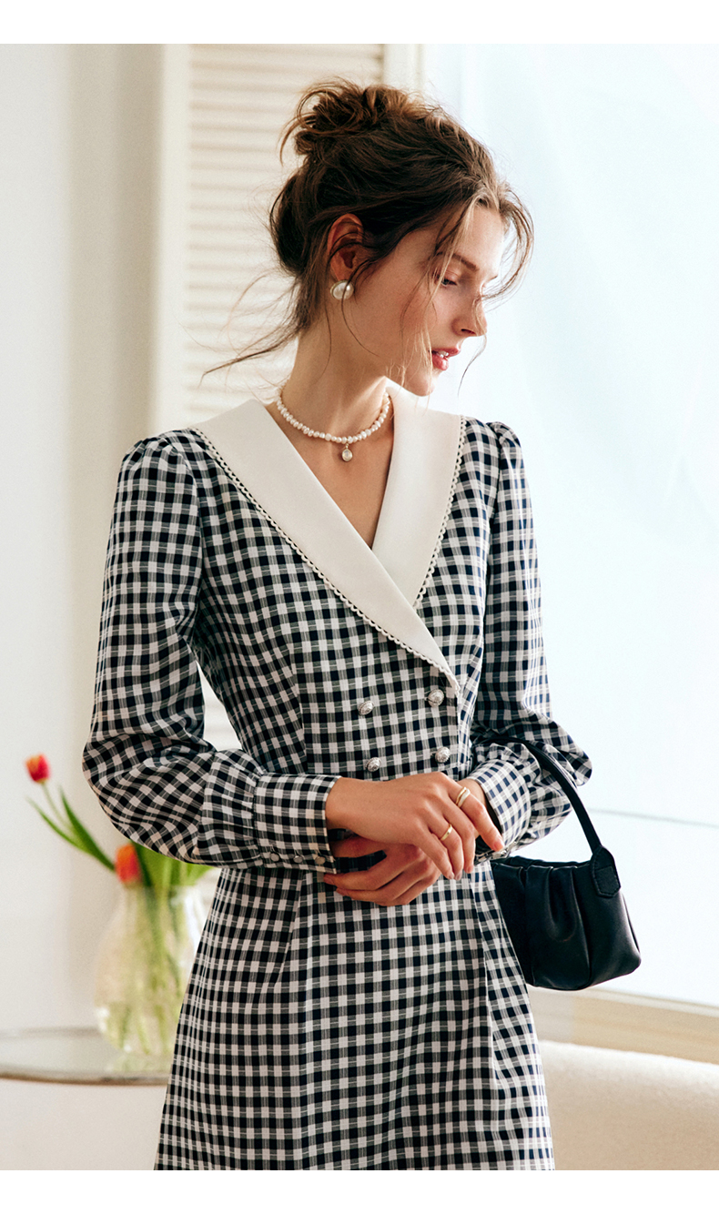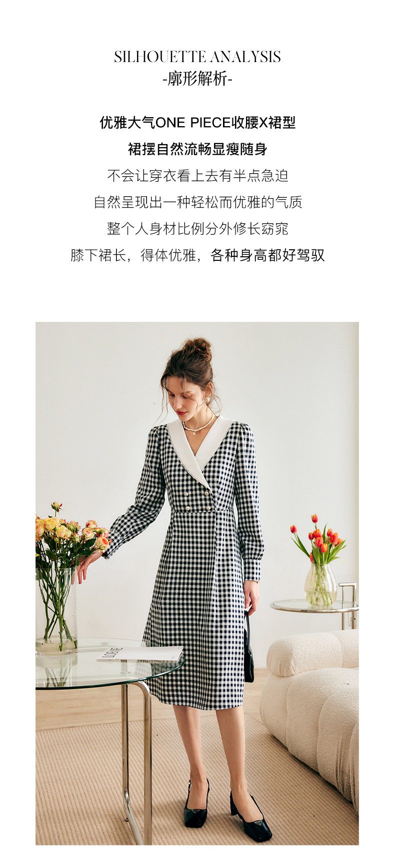 欧芮儿格子连衣裙女夏季2022年新款收腰气质复古赫本风海军领裙子