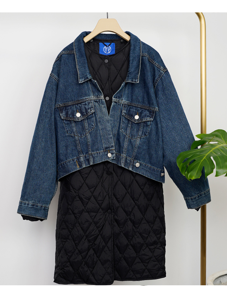 NUTS商场同款牛仔拼接外套女中长款上衣141040394
