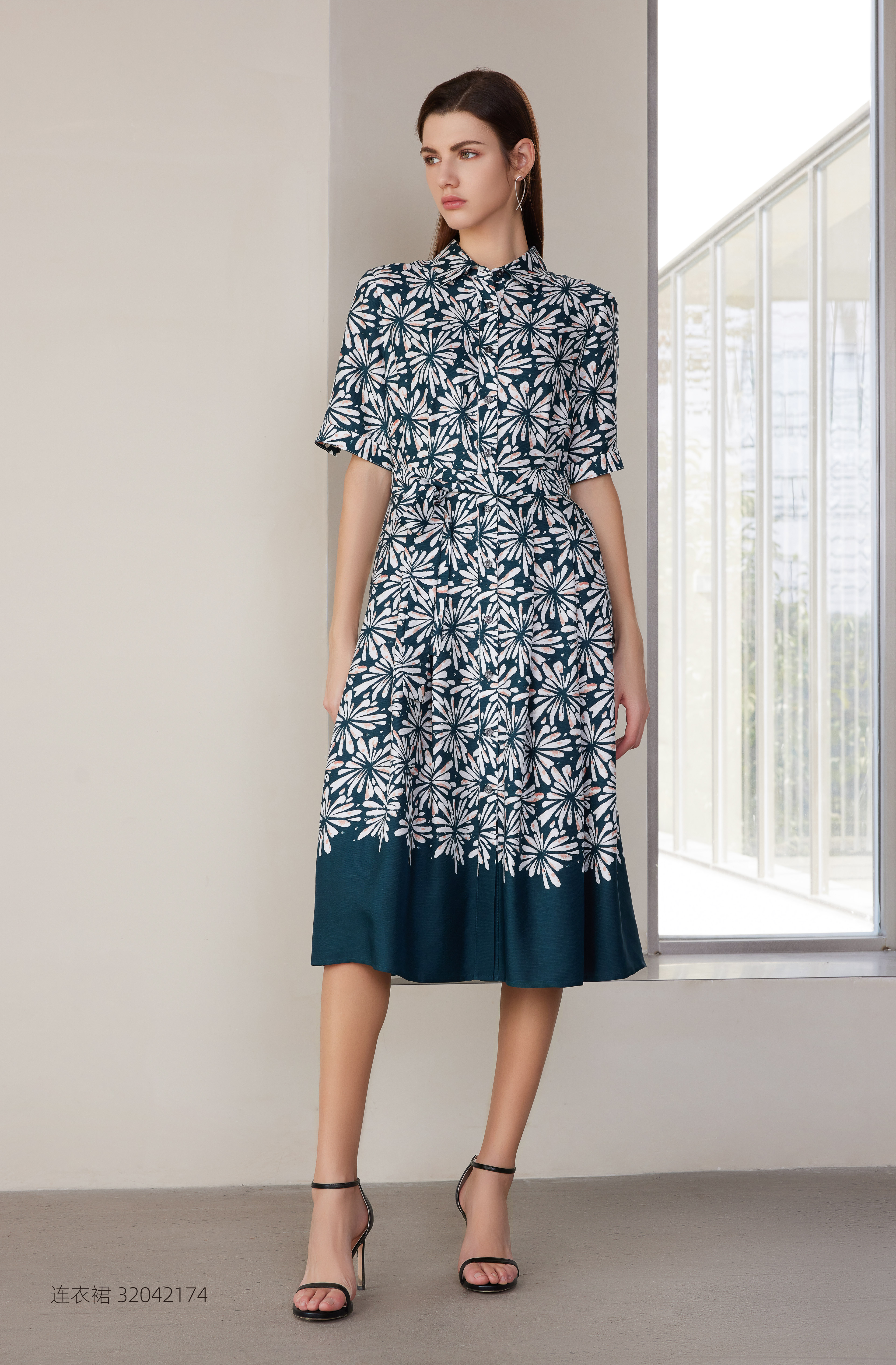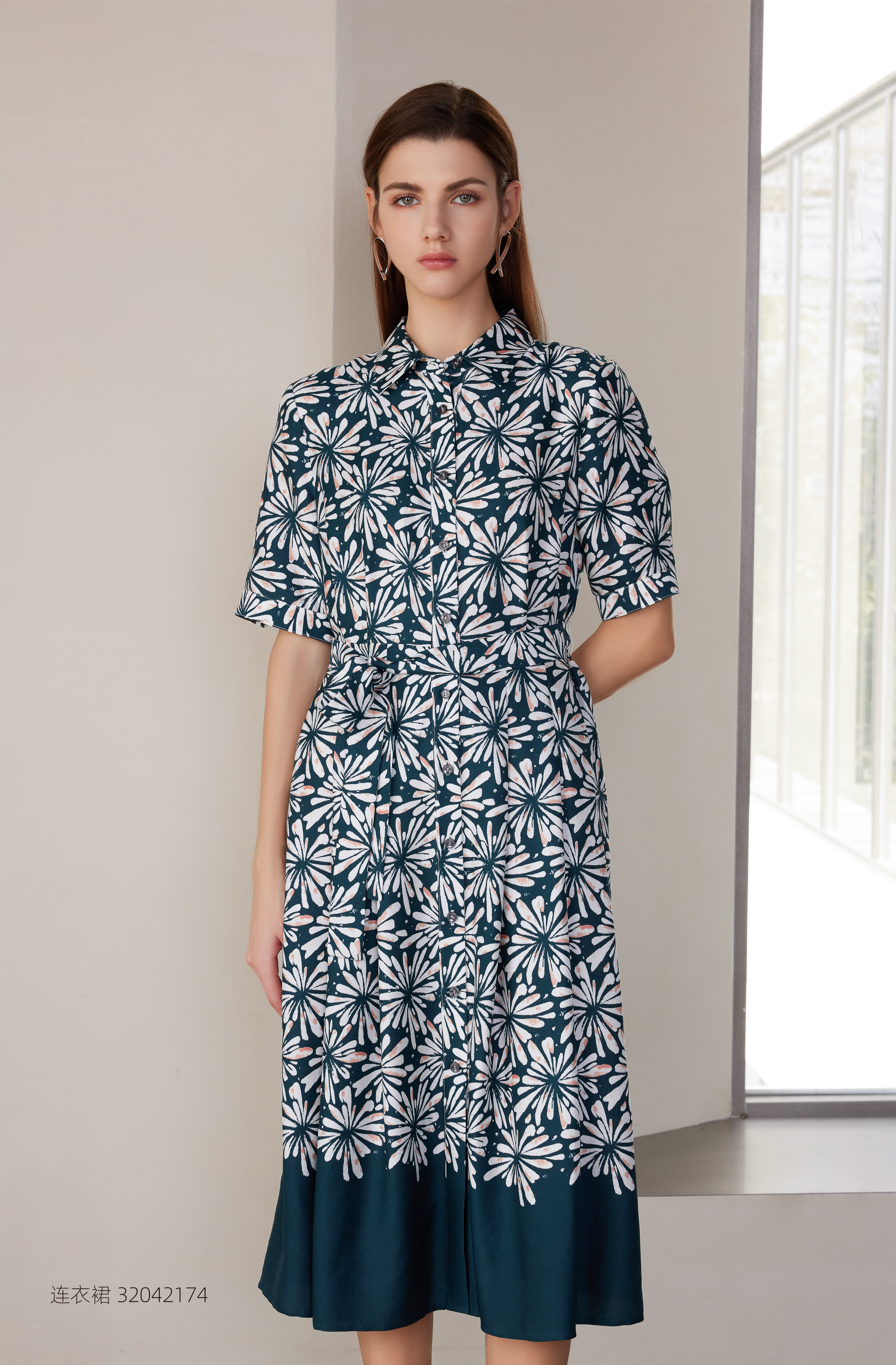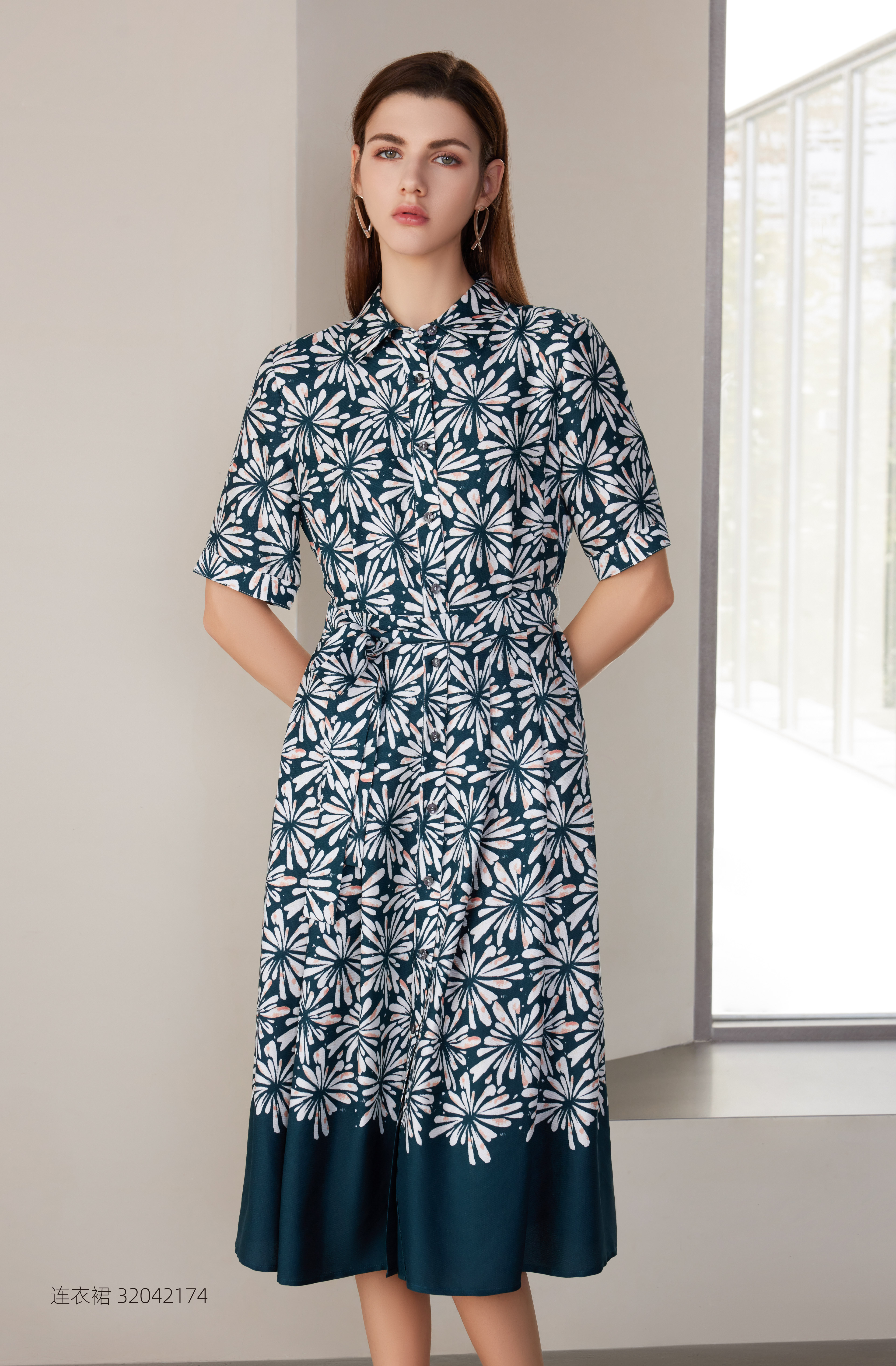 【桑蚕丝印花连衣裙】24年春夏新品女士100%桑蚕丝印花连衣裙时尚系带收腰裙子