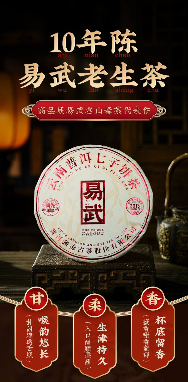 澜沧古茶2013年易武11年陈普洱茶生茶生普大饼345g