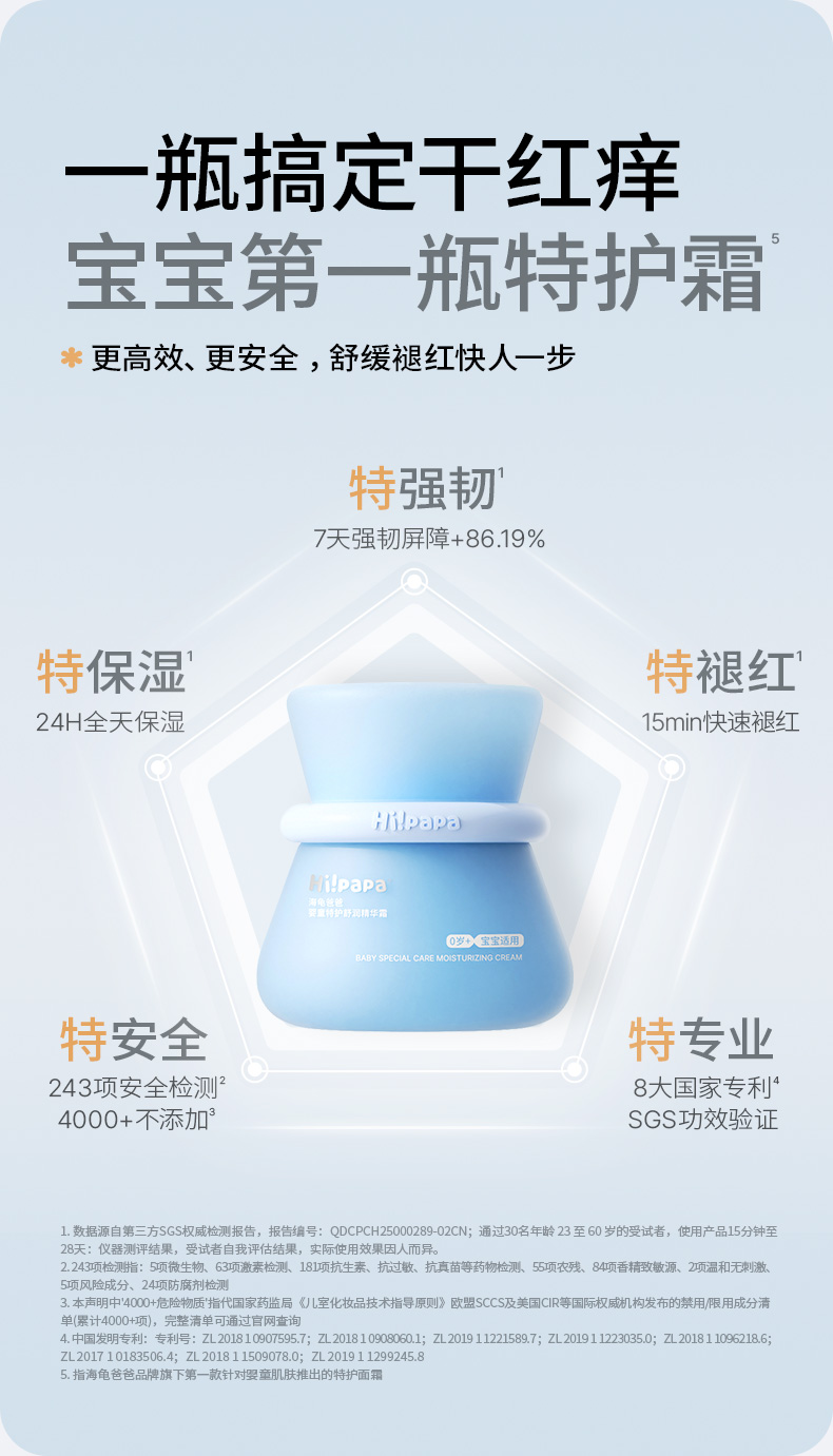 *【蓝胖子特护面霜】海龟爸爸婴童特护舒润精华霜~国际AI靶点屏障科技,4周击退敏感肌