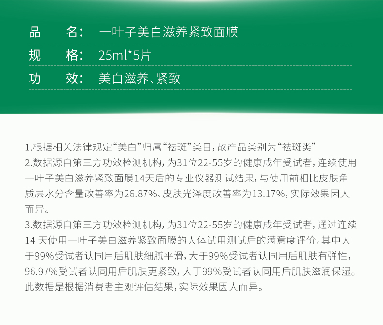 【试用尝鲜装】一叶子美白滋养紧致面膜2片