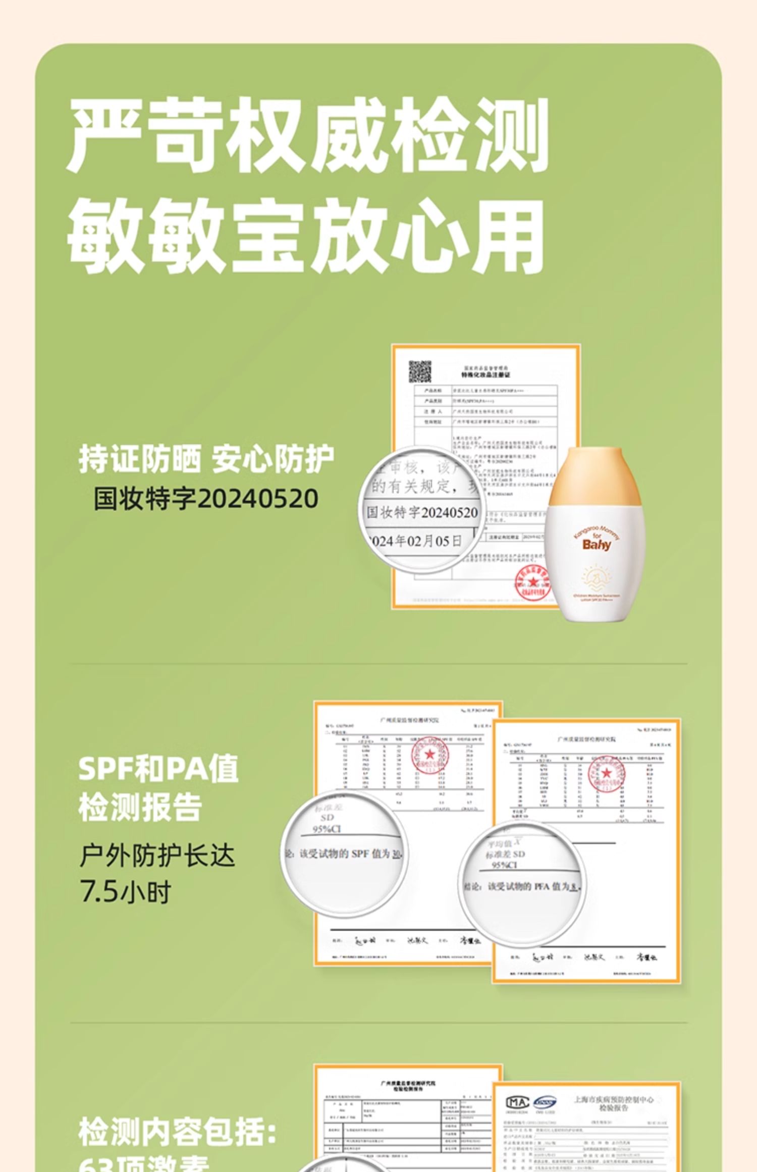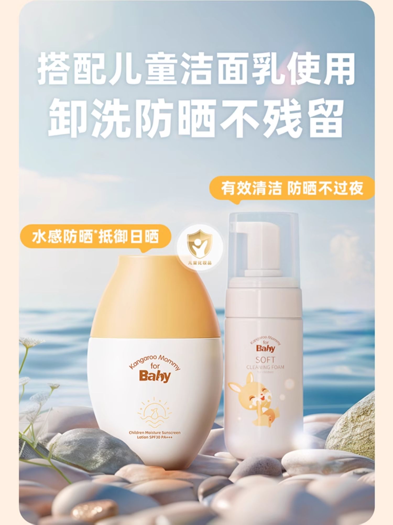 【限时特价】袋鼠比比儿童防晒霜婴幼儿宝宝学生专用温和防紫外线防晒乳海边