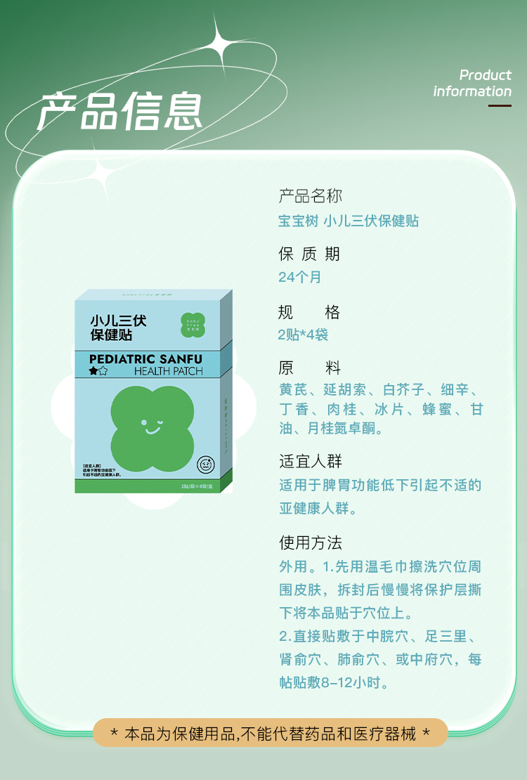 【任选2件| 单件不发货】宝宝树 党参香附胀气保健贴 / 消食健脾保健贴 / 止咳保健贴 / 三九保健贴 2贴*4袋*2盒装