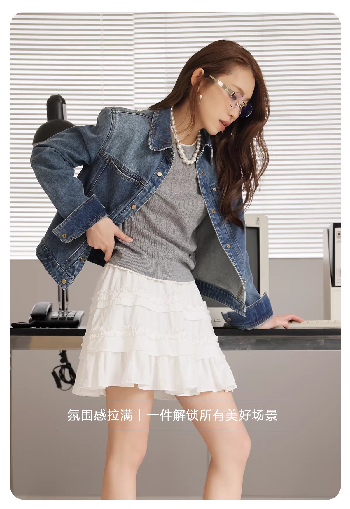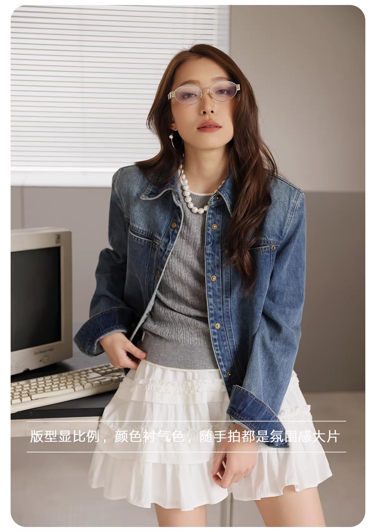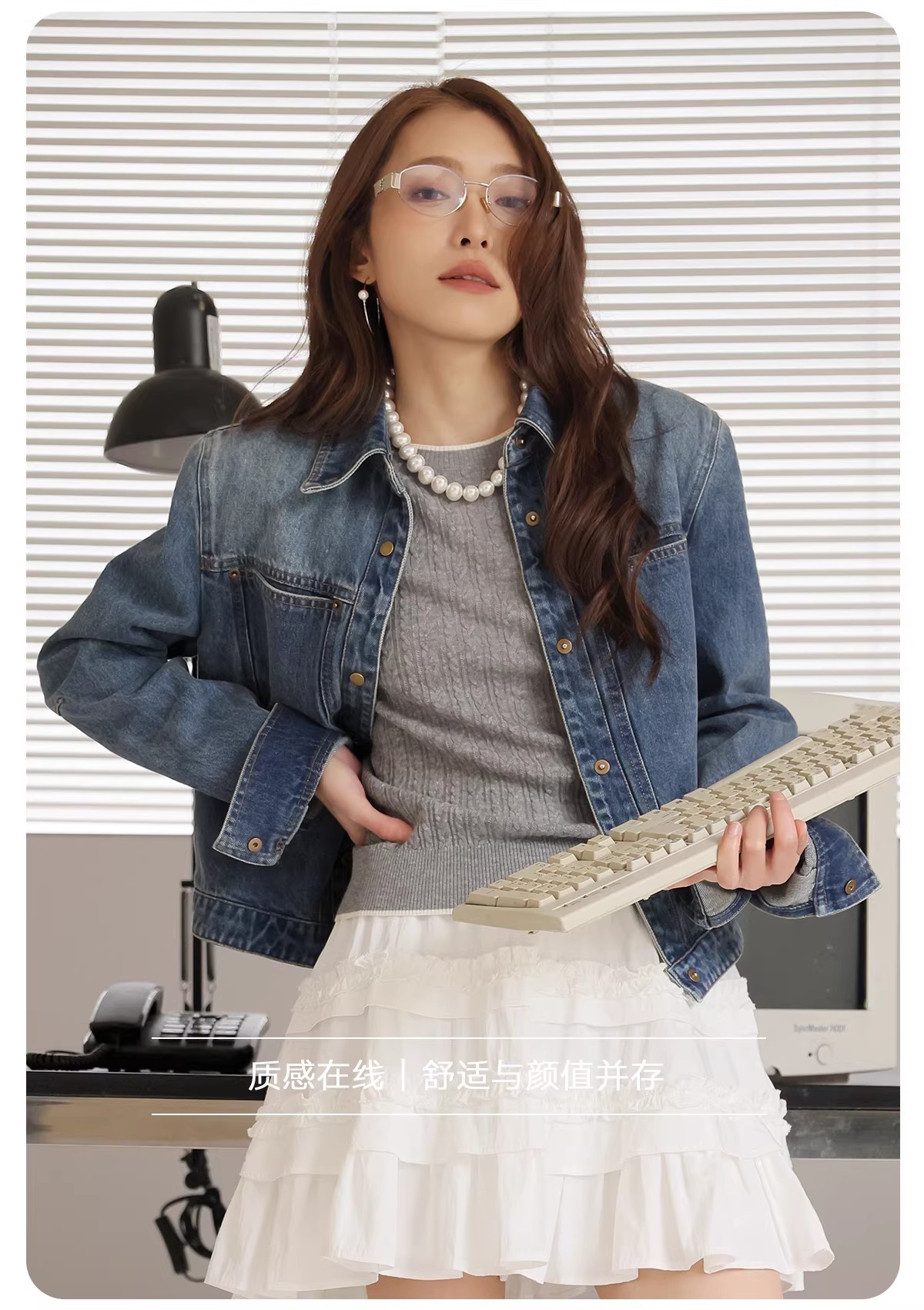 【门店同款】ENJOY春季“柔权主义”复古翻领短款牛仔外套 169696082