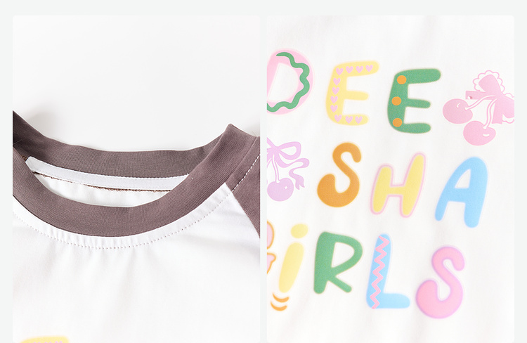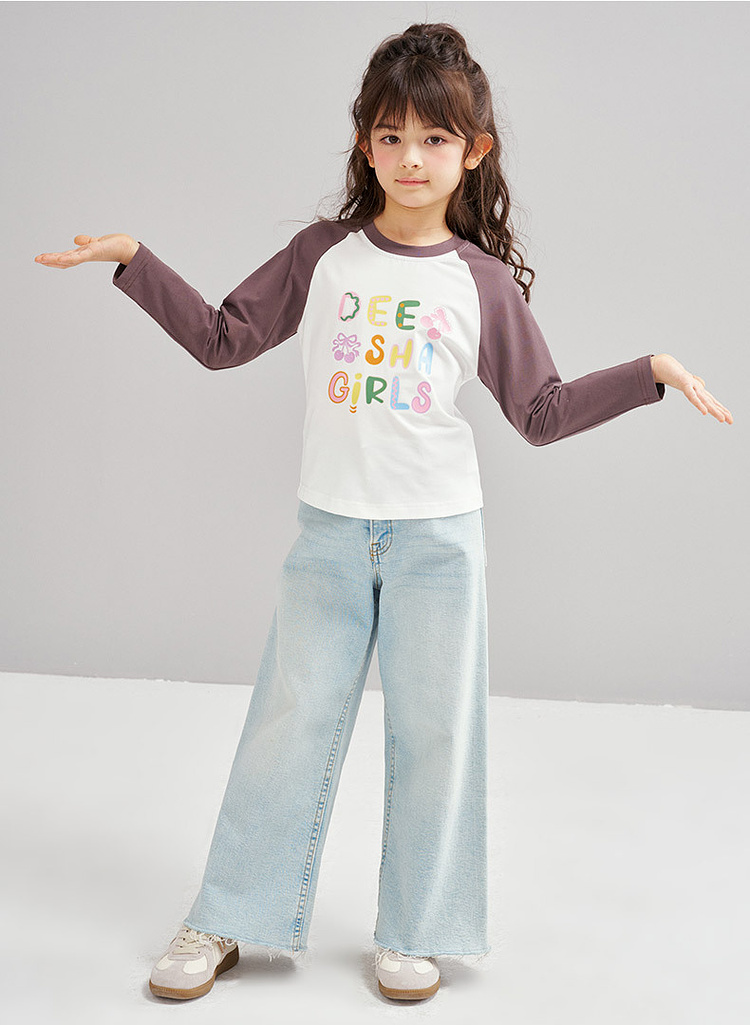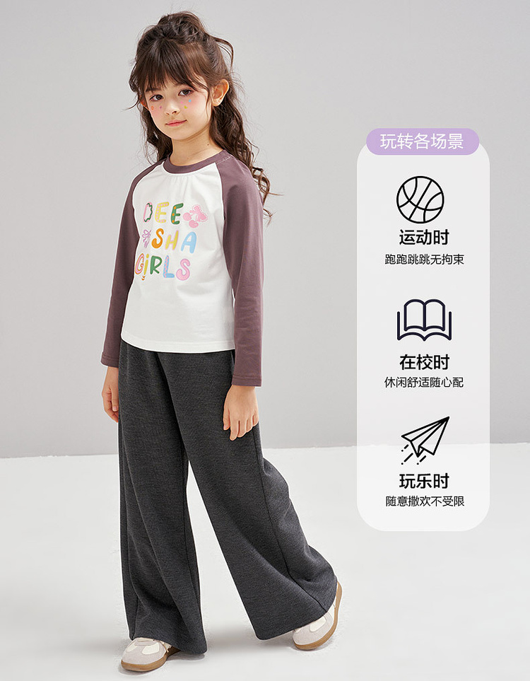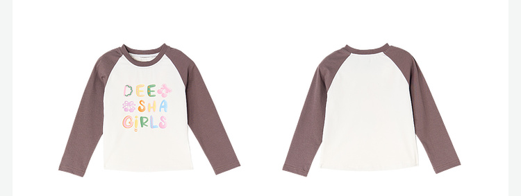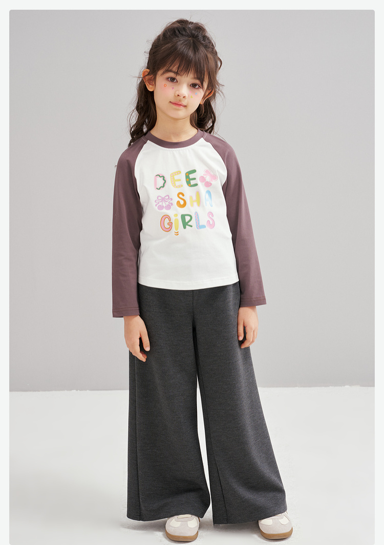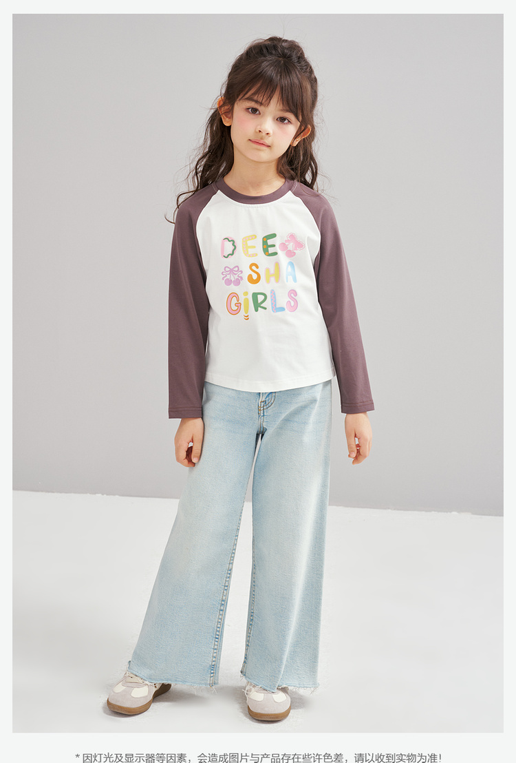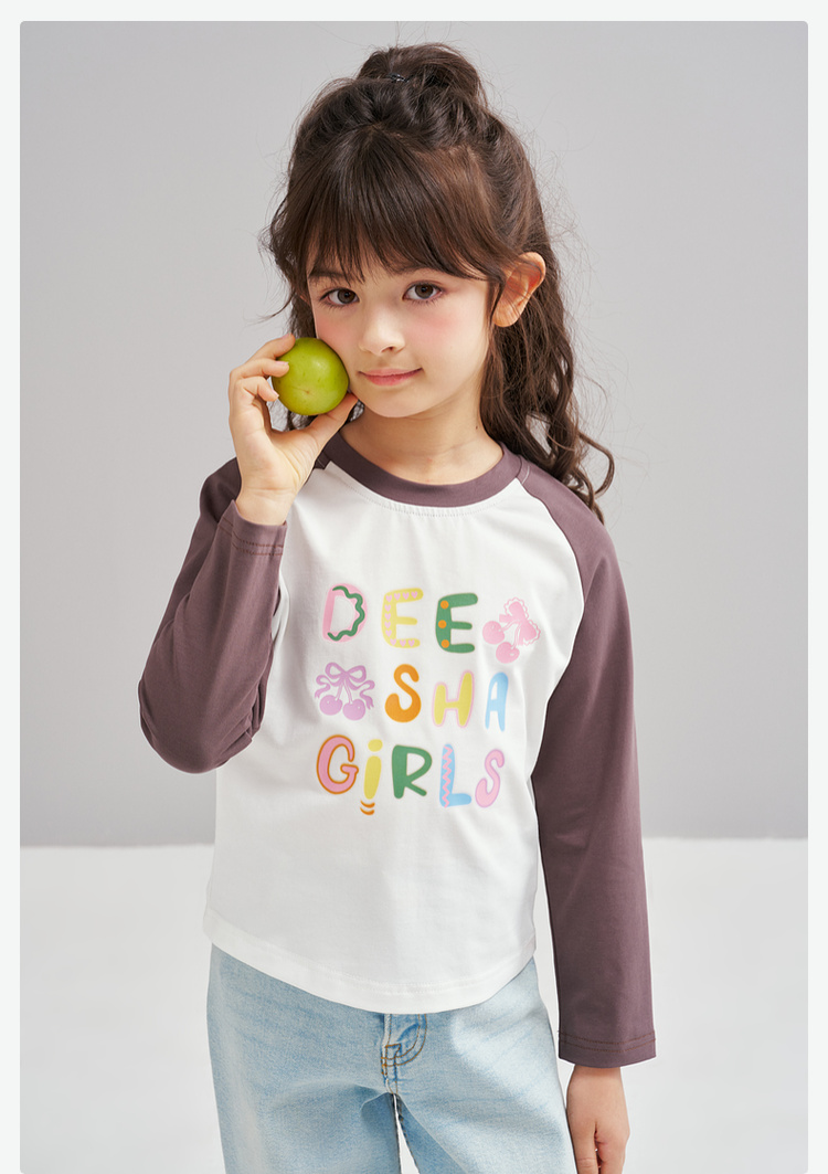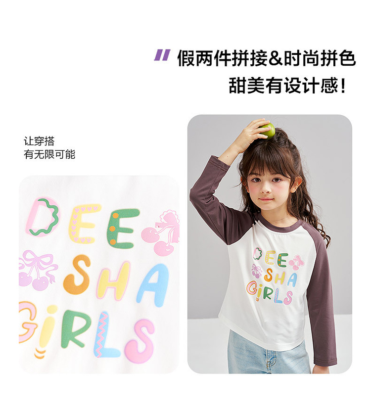 笛莎Deesha 2026春季女童时尚拼色趣味印花长袖T恤
