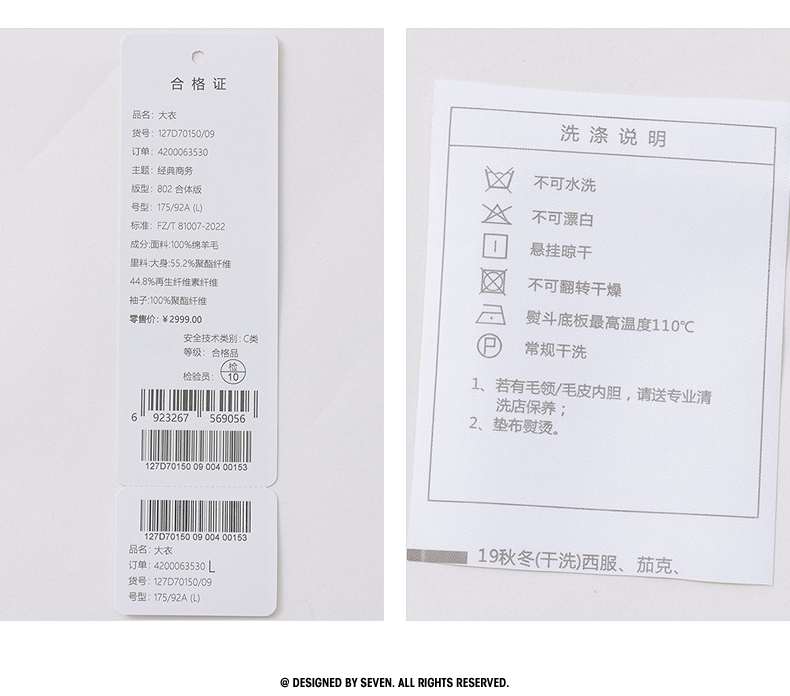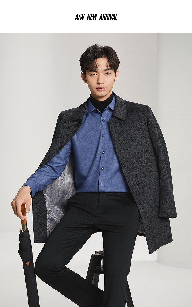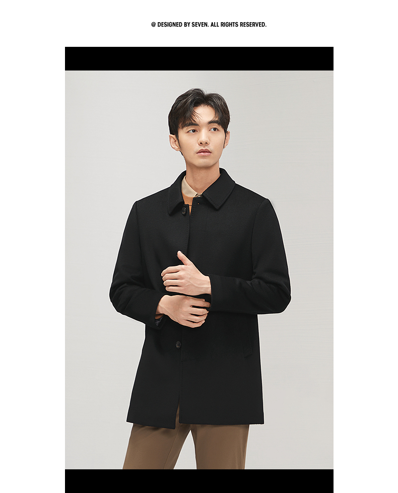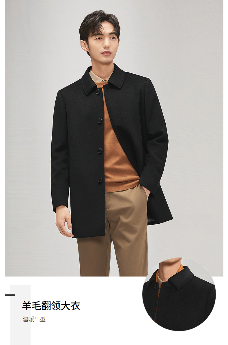 【纯羊毛】柒牌毛呢大衣男2024秋冬新品商务绅士厚款翻领保暖外套 127D70150