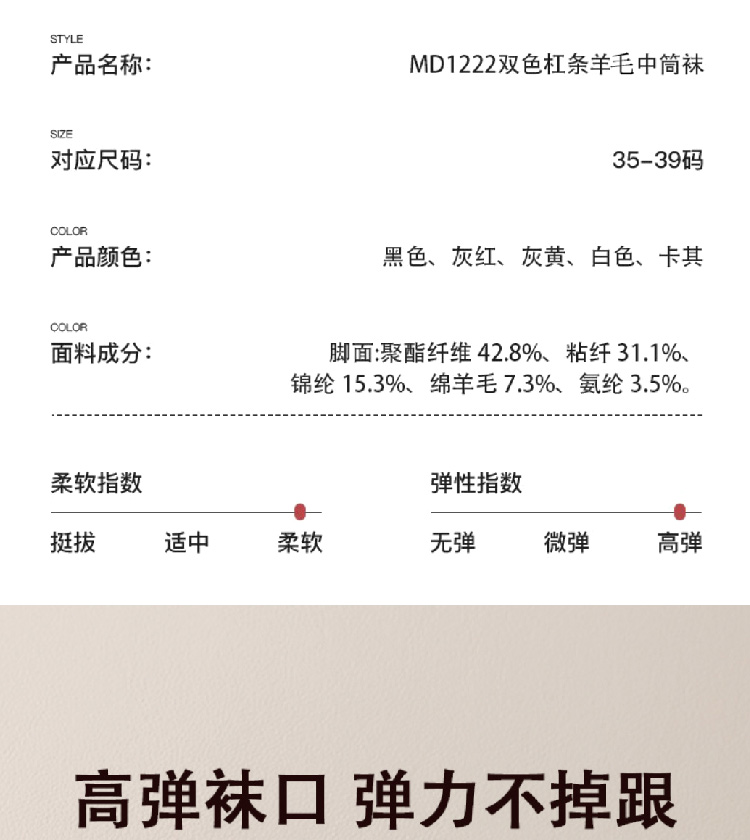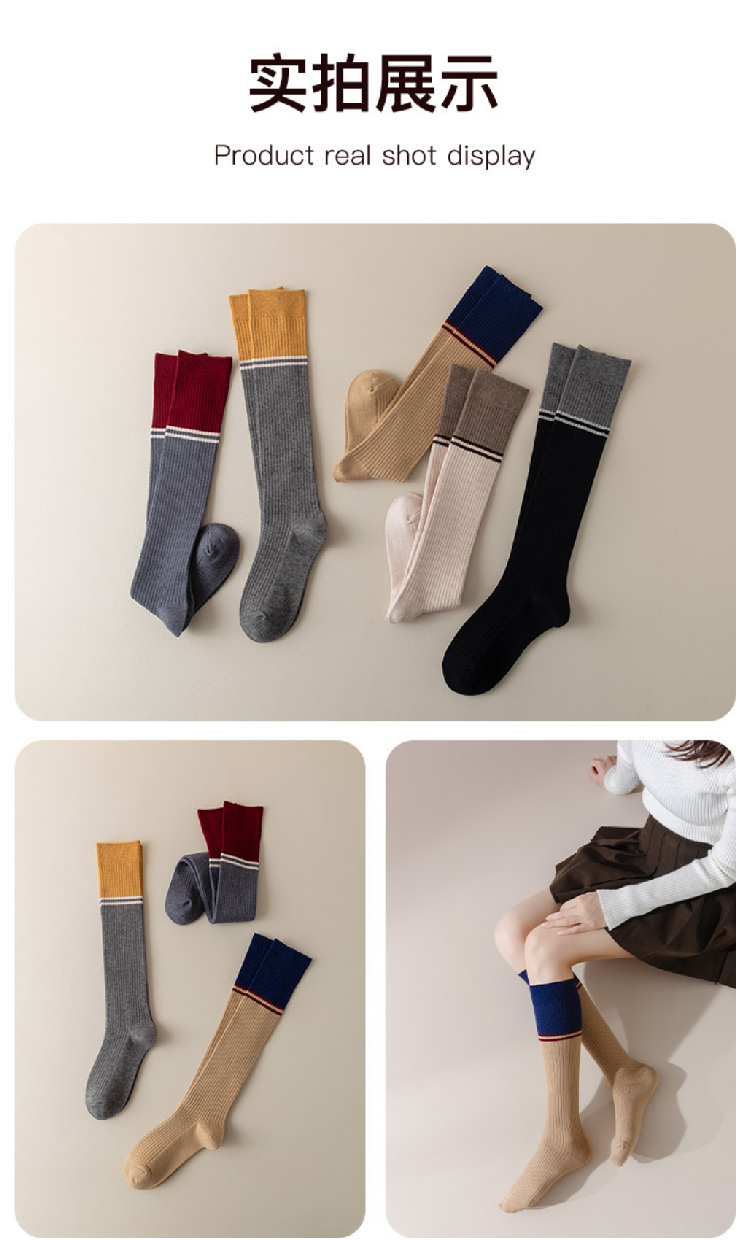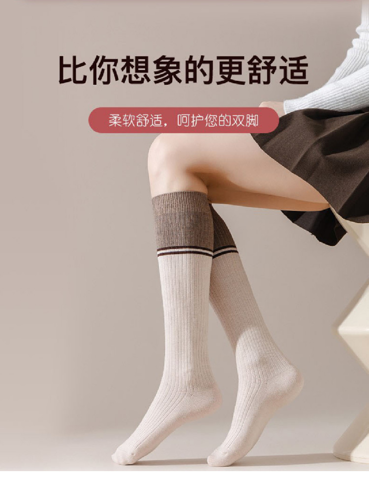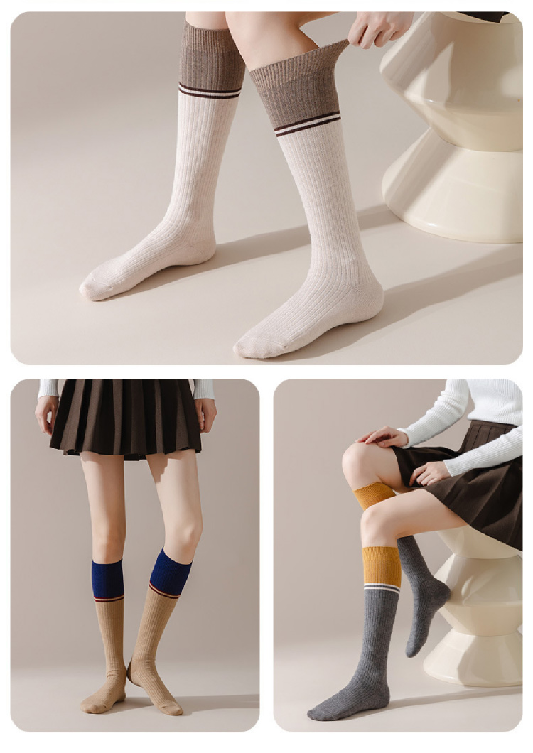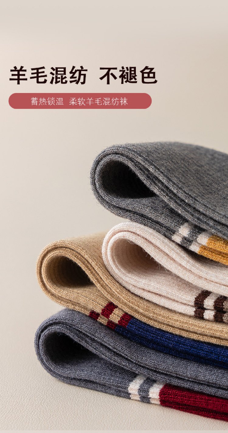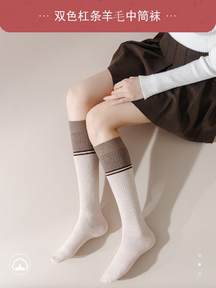 【羊毛混纺中筒袜】潮流拼色羊毛袜加厚秋冬款 显瘦双色杠条袜美拉德中筒袜小腿袜