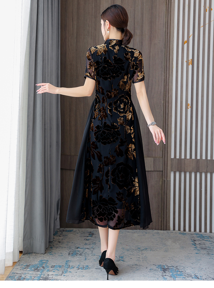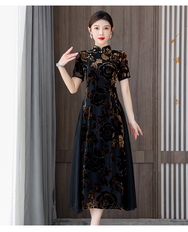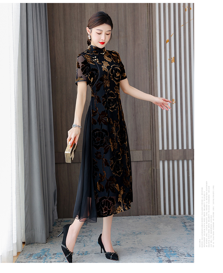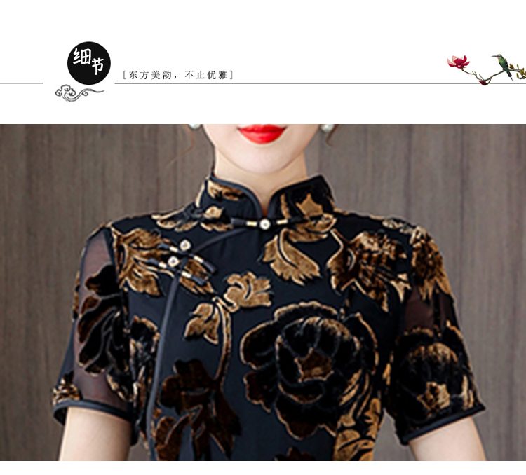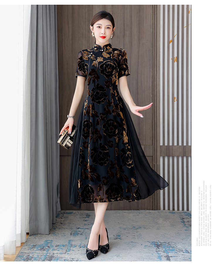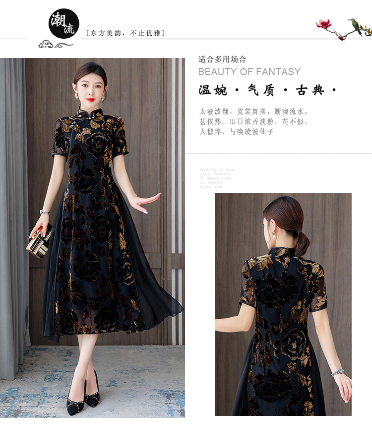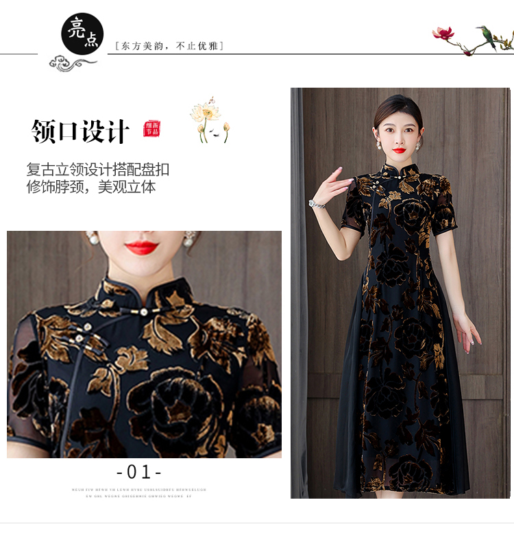 秋冬新款,气质仿水貂复合超柔中长款女士清新年轻款改良旗袍MLS-6826
