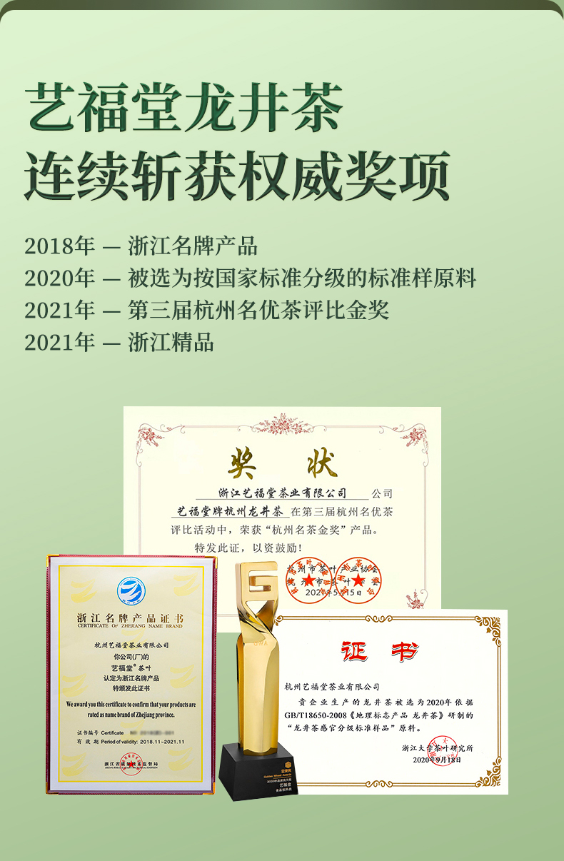 “艺福堂茶业”创立于2008年,是一家集生产、销售、科研为一体的现代茶业企业,主打西湖龙井,兼营世界各地名优茗茶及花草茶,是中国茶行业为数不多的年销售额过5亿的品牌之一,是杭州亚运会官方指定用茶!