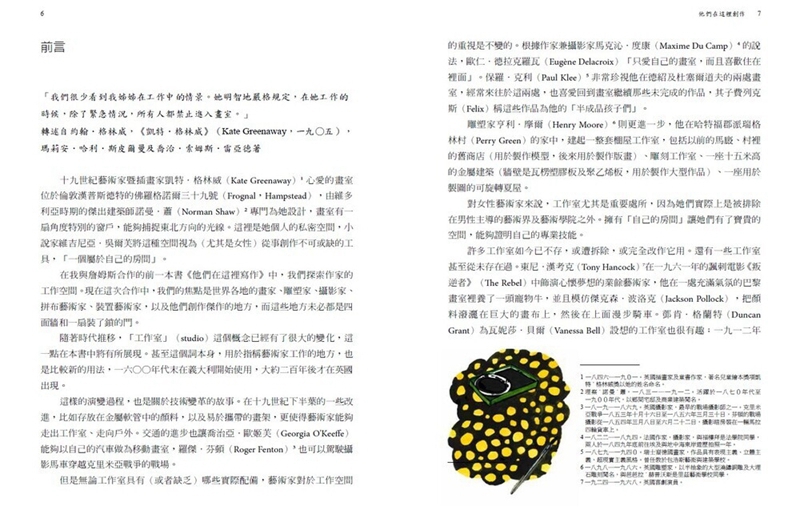 ★ 跨越时空和流派,亚历克斯.强森汇集了五十位伟大的艺术家以及五十位优秀的作家,带领读者到他们工作室中心──从阁楼和榖仓、从地下室到工厂,有时整座城市,甚至天空都是他们的创作空间,其多样化与特殊性,令人惊奇。