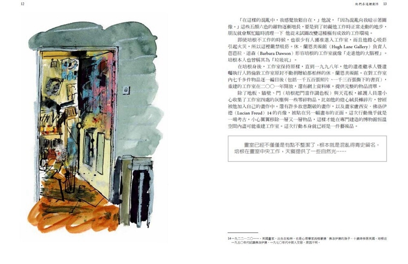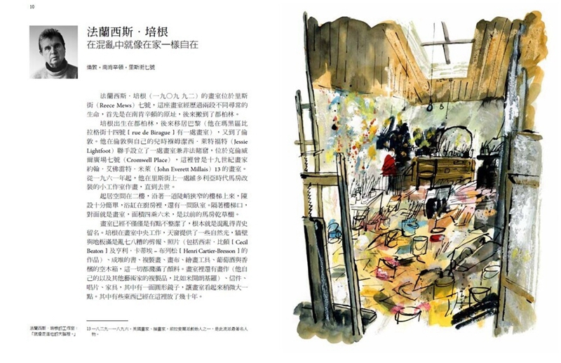 法兰西斯.培根跟保罗.塞尚,他们可以竞争谁的工作室比较乱的冠军宝座;曾是英国首相的邱吉尔喜欢带着保镳在户外写生,而北斋从不打扫工作室,空间不够了就直接搬到下一个地方,以至于终生大概搬了九十多次家。