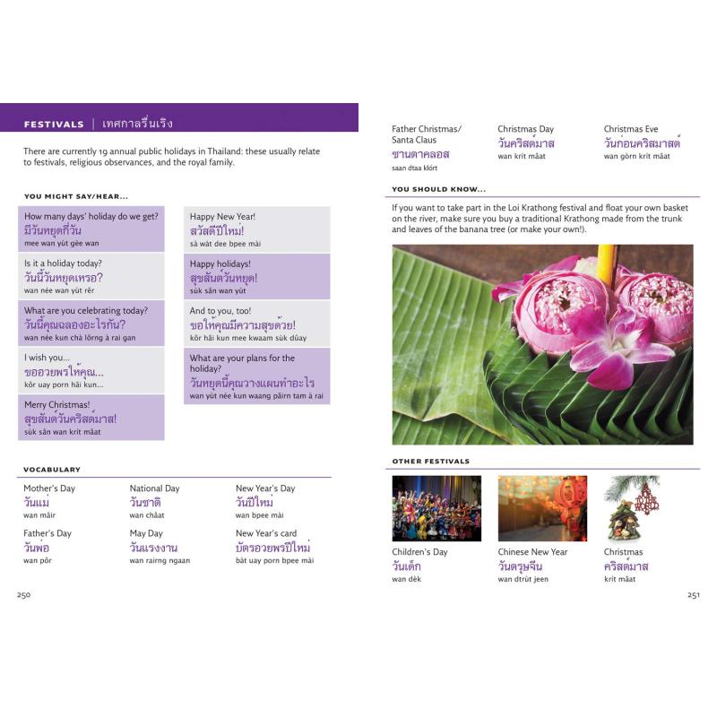 3,000 essential words and phrases for modern life in Thailand are at your fingertips with topics covering food and drink, home life, work and school, shopping, sport and leisure, transport, technology, and the environment.