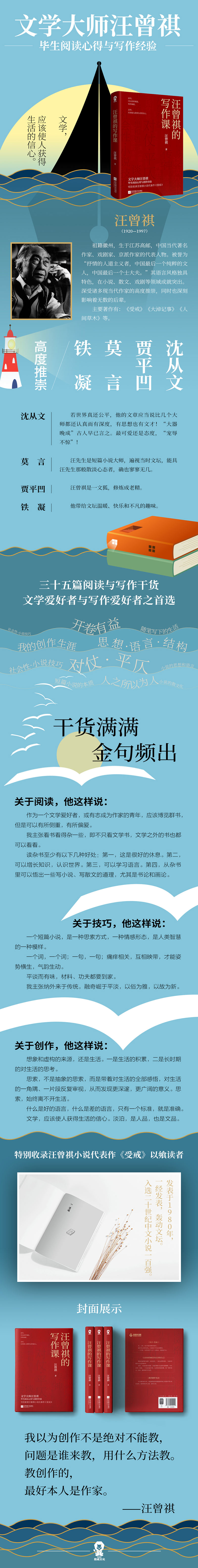 ★文学大师汪曾祺毕生阅读心得与写作经验。 ★沈从文、贾平凹、莫言、铁凝 高度推崇。 ★关于阅读、关于技巧、关于创作——三十五篇文章,干货满满,金句频出。当下文学爱好者与写作爱好者之优选。 ★特别收录汪曾祺小说代表作《受戒》 。 ★文学,应该使人获得生活的信心。