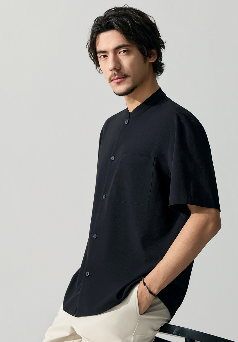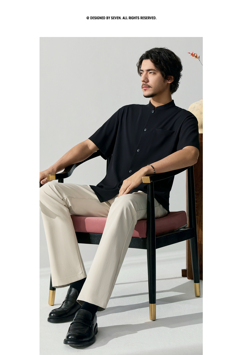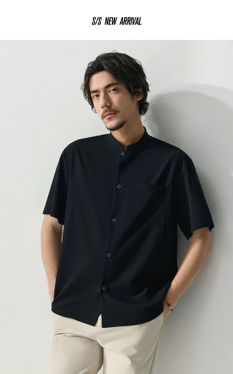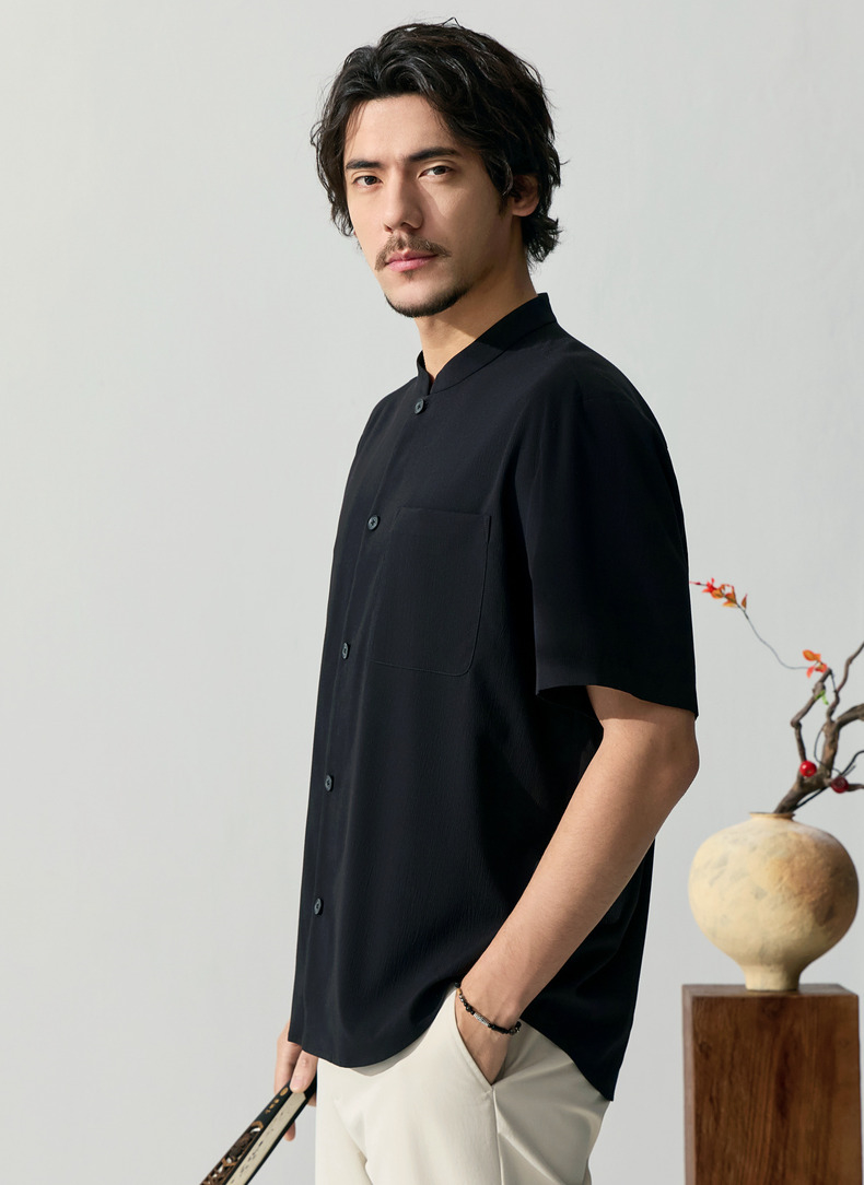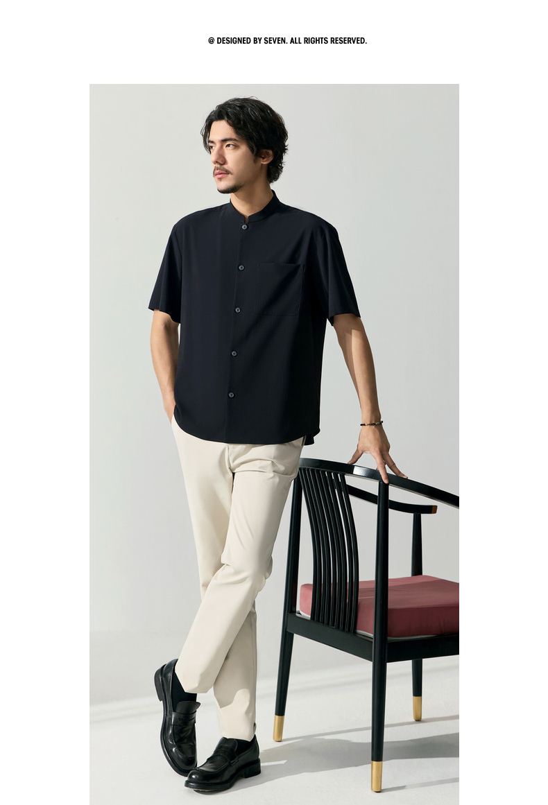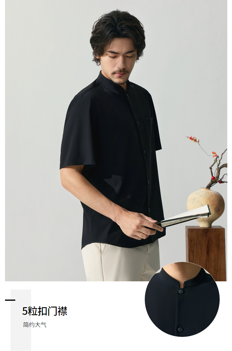 【中华立领】柒牌短袖衬衫男夏季新款胸前贴袋肌理中国风休闲衬衣128A71740