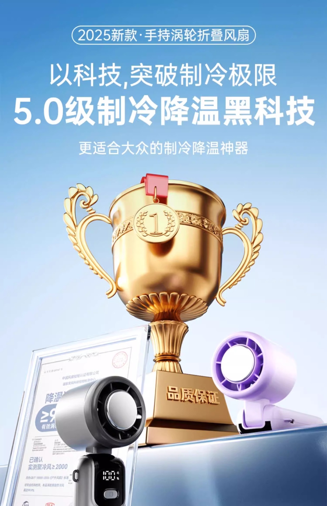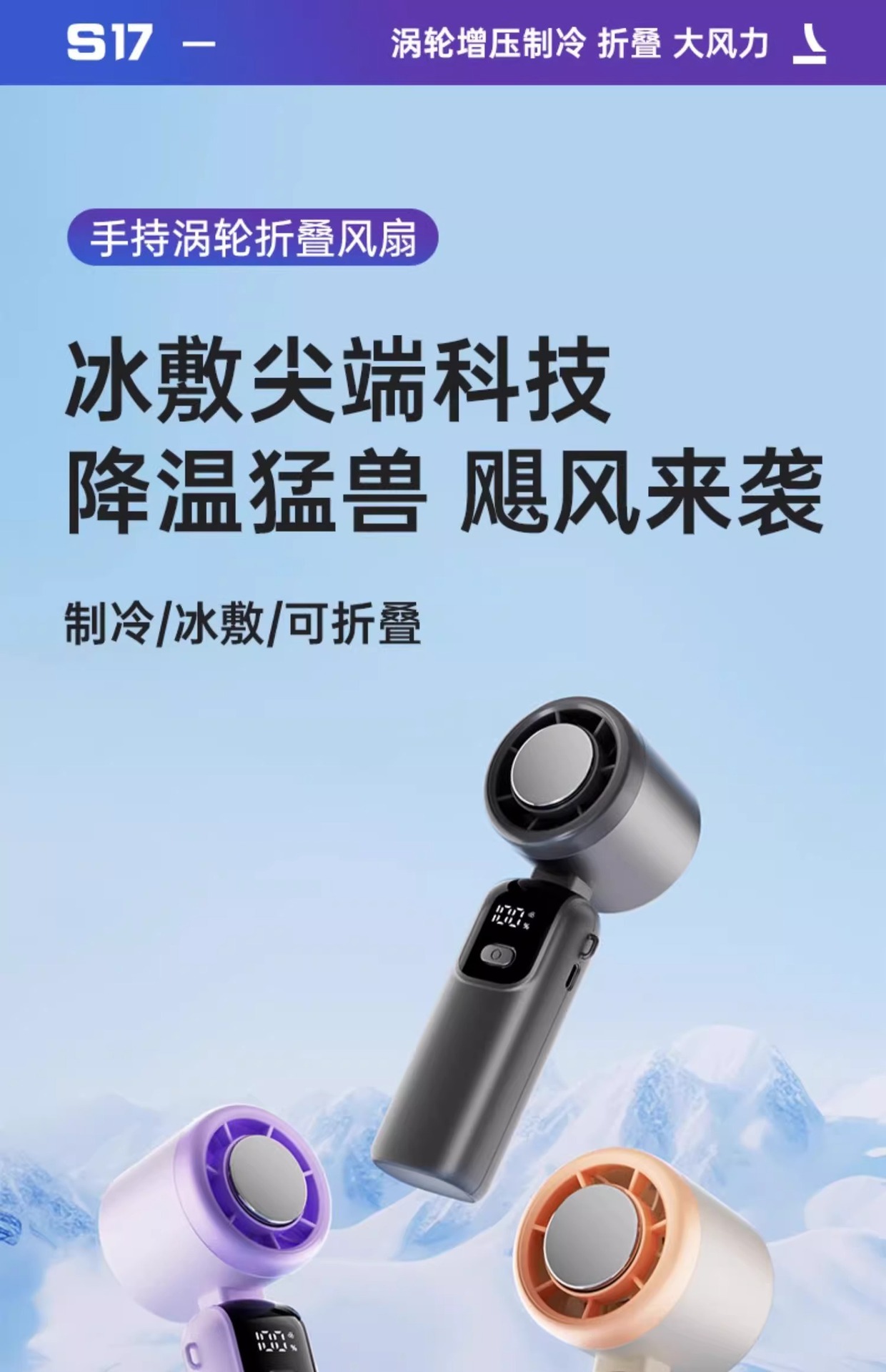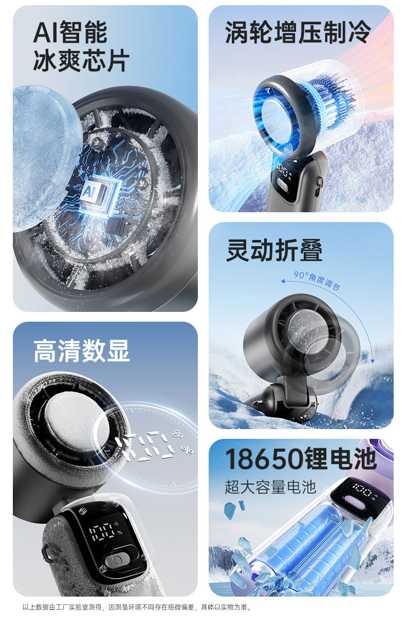 【手持涡轮折叠风扇】半导体制冷手持风扇高速暴力风扇折叠挂脖涡轮冰敷小风扇手持。ry