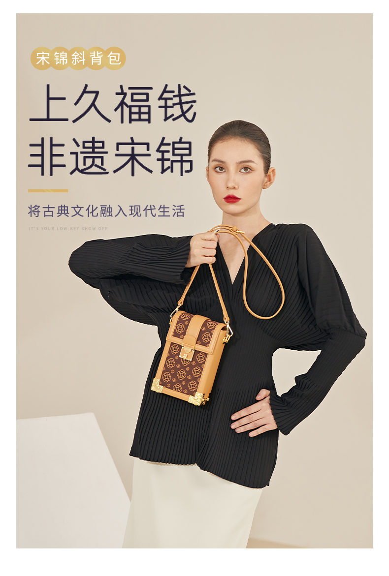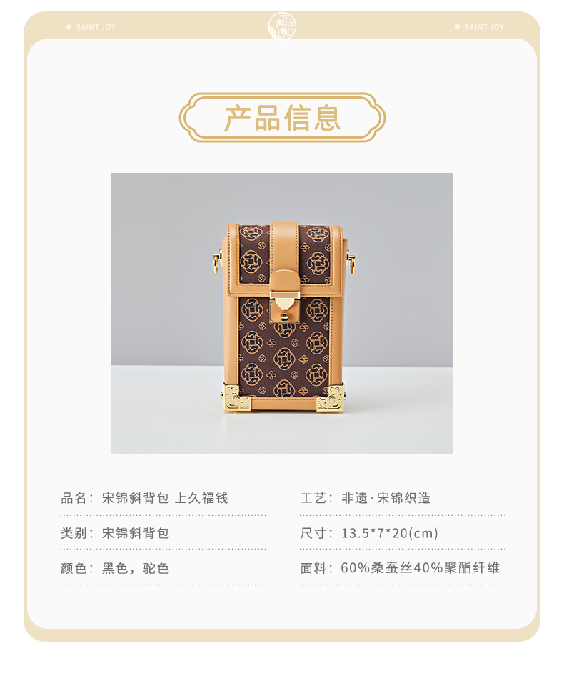 SAINTJOY/上久楷 宋锦斜背包 上久福钱 BWS23B0701