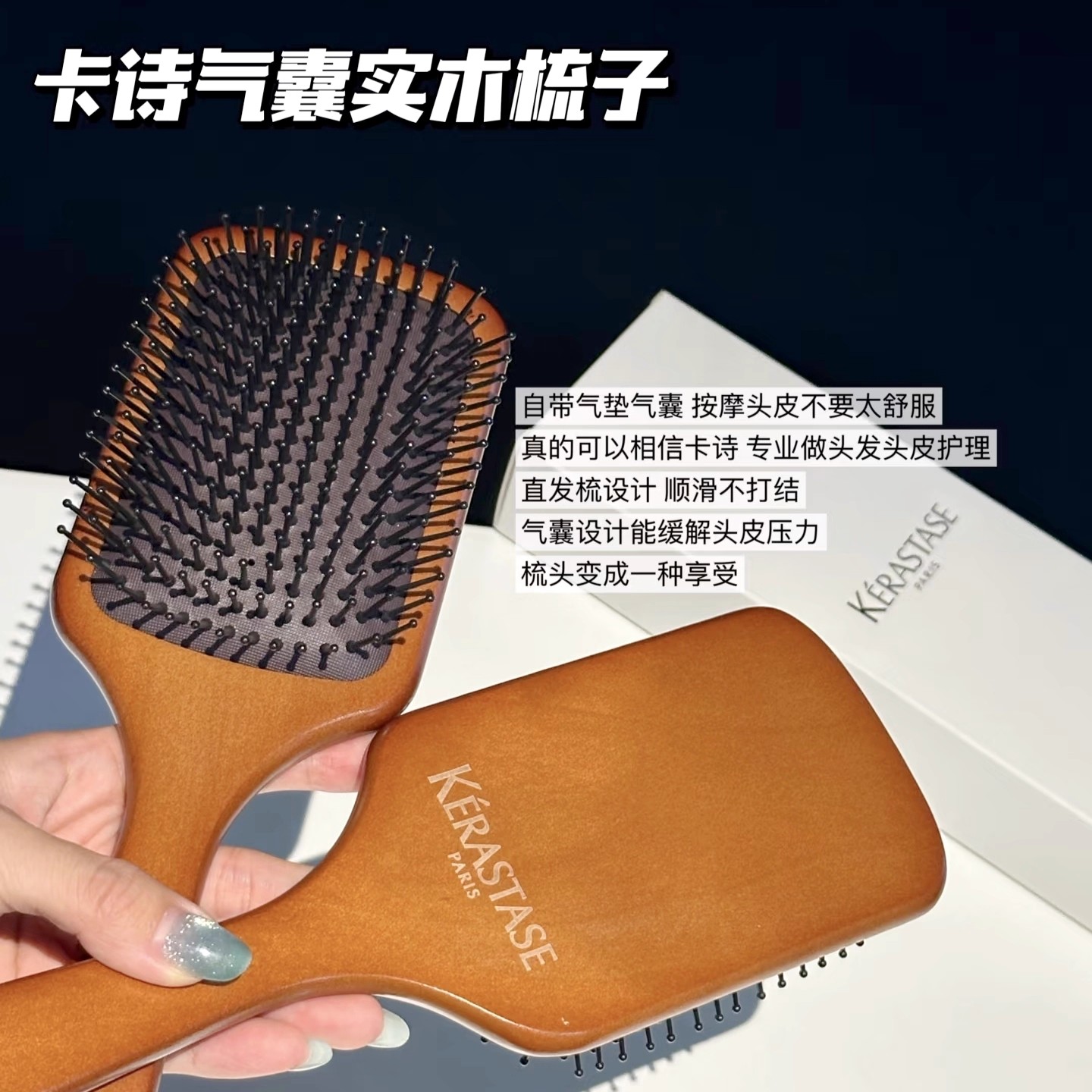 卡诗按摩气垫梳木质气囊梳蓬松养发防静电梳子