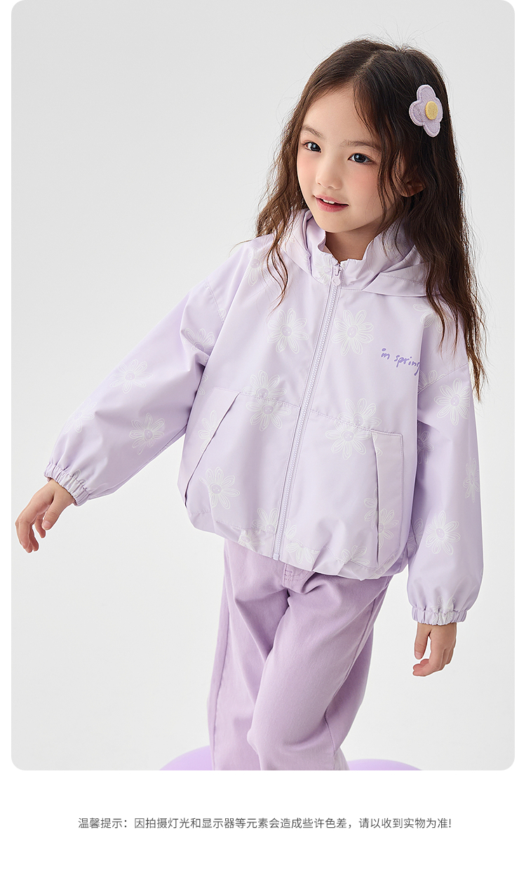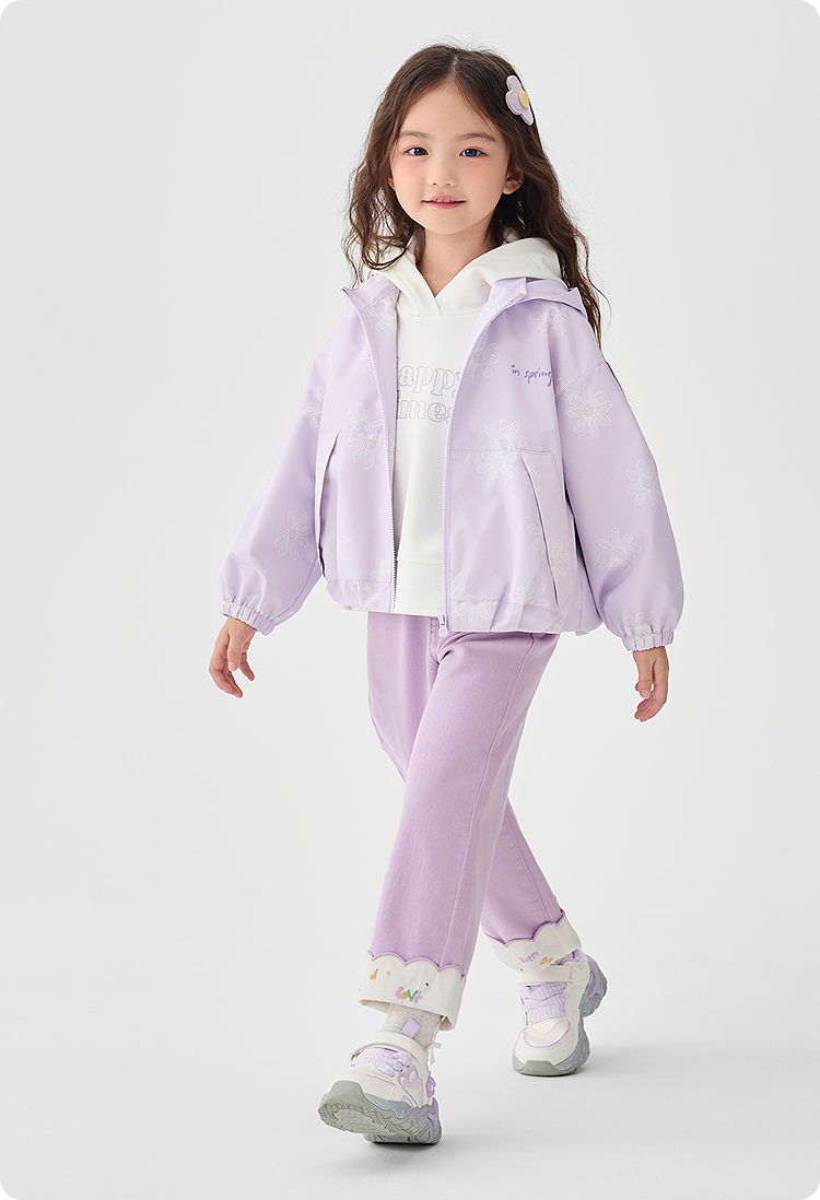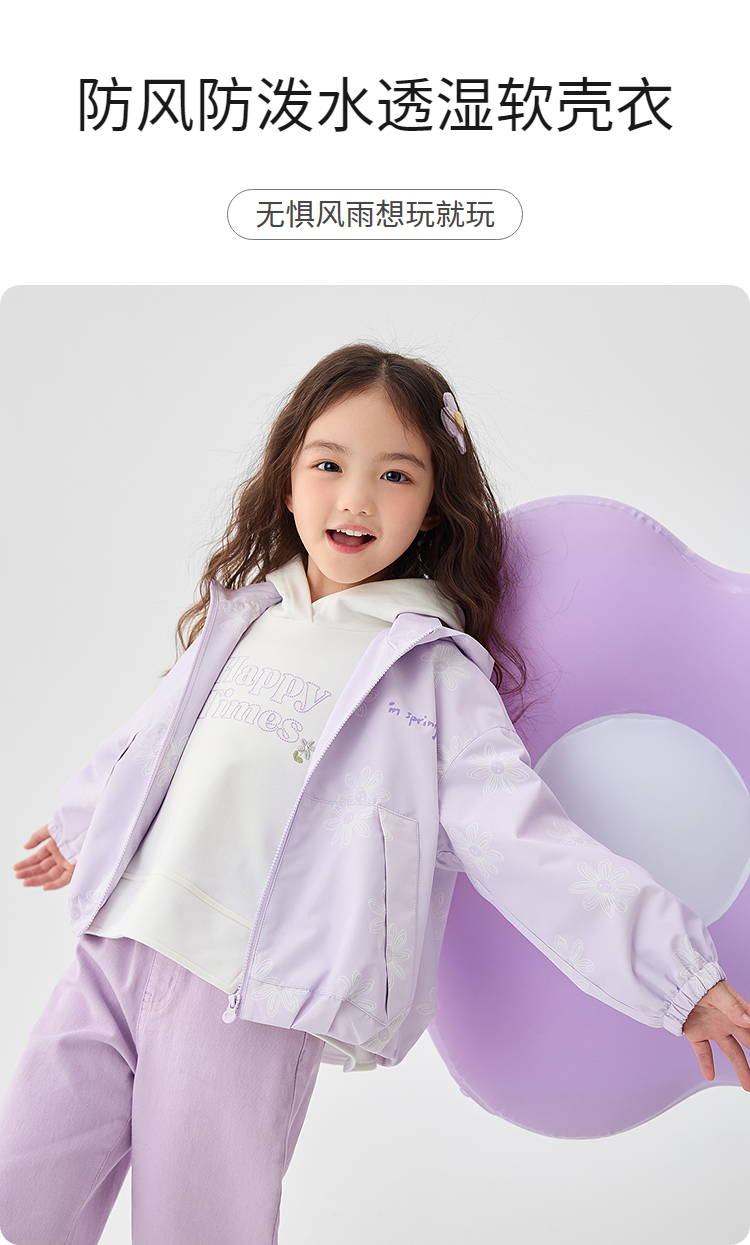 巴拉巴拉童装女童软壳衣2025春季新款连帽外套印花潮