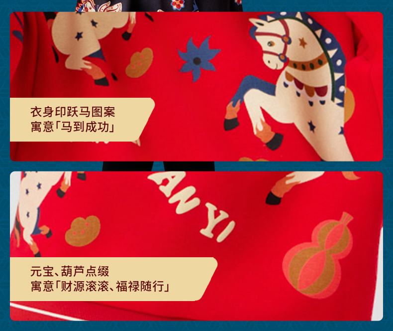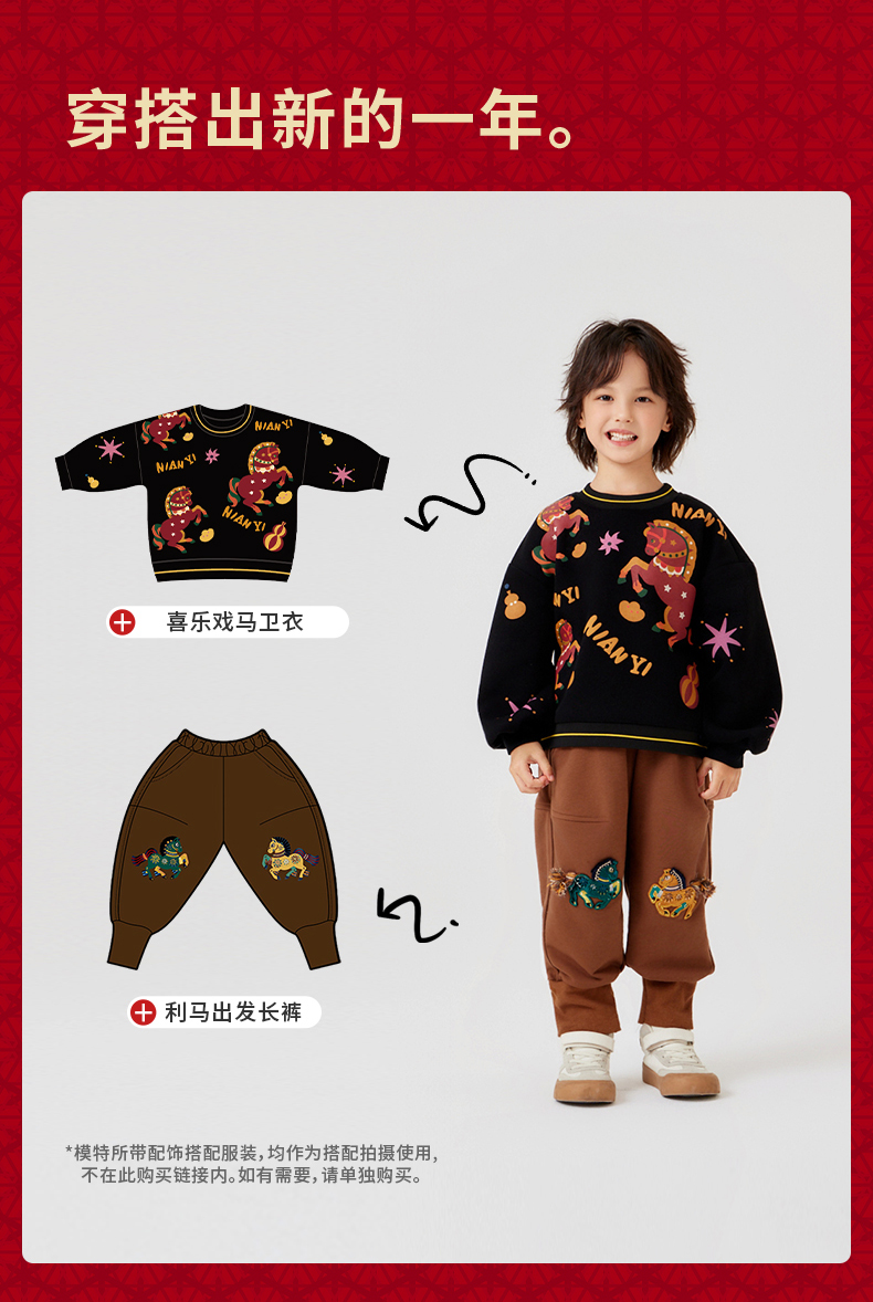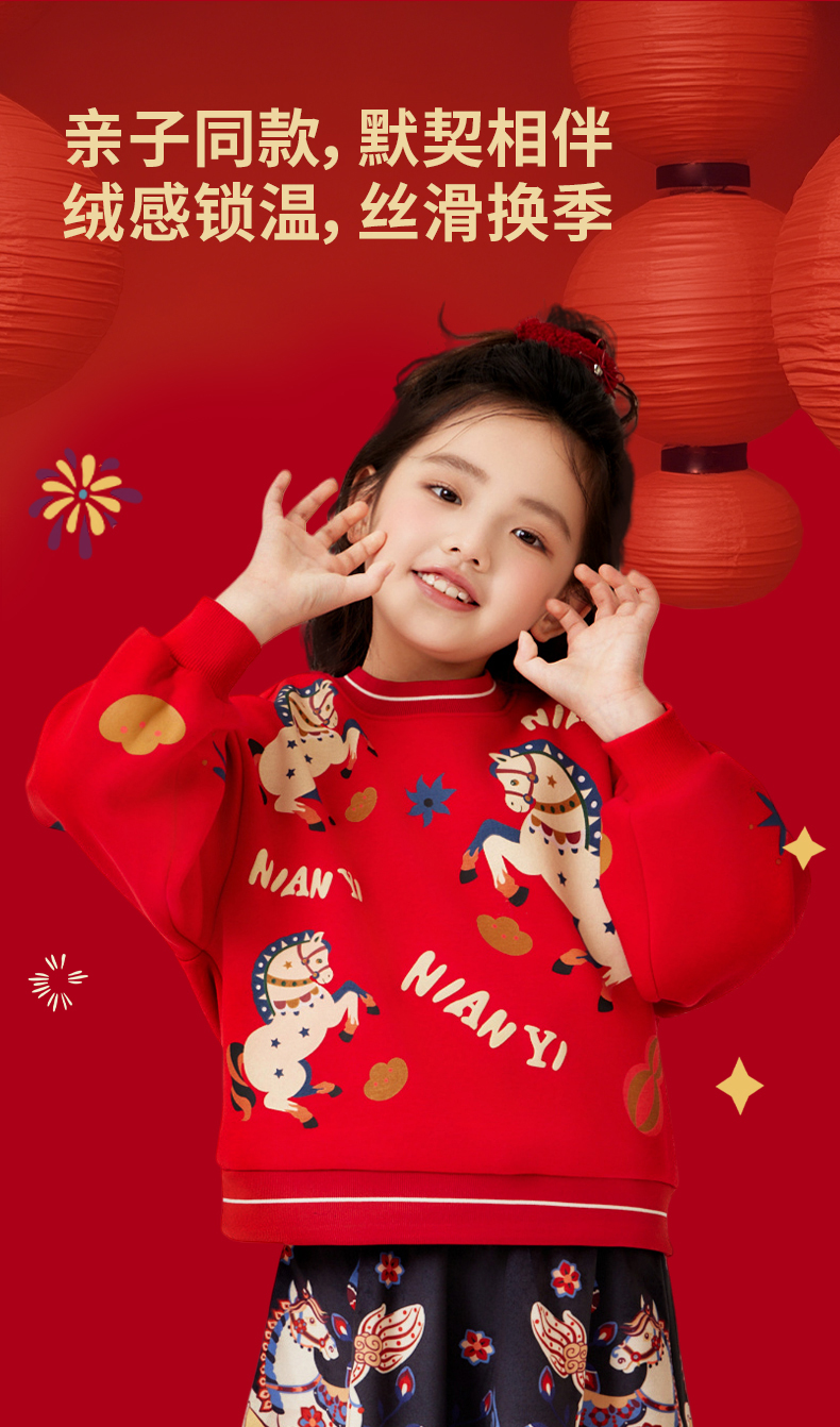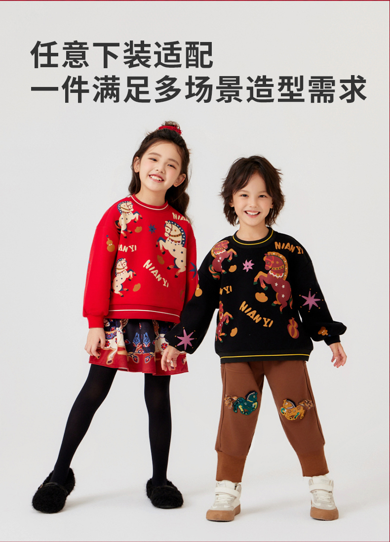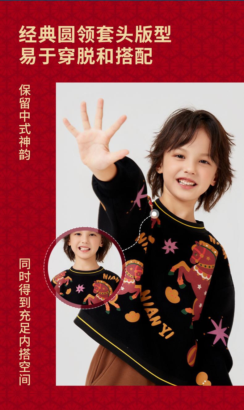 【年衣品牌团】年衣童装卫衣亲子款冬季新款男孩女孩中式国风套头喜乐戏马卫衣 1207