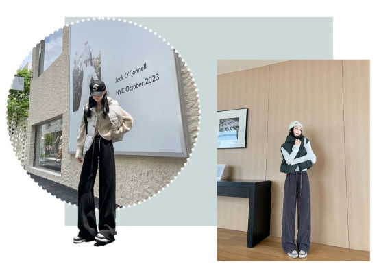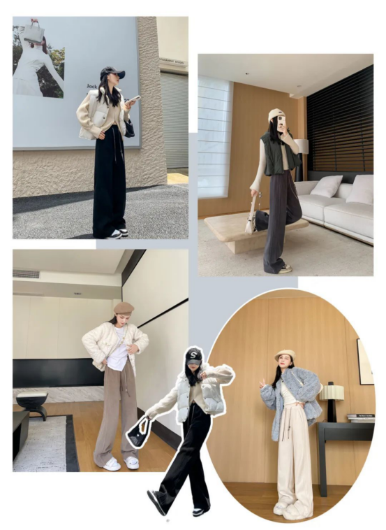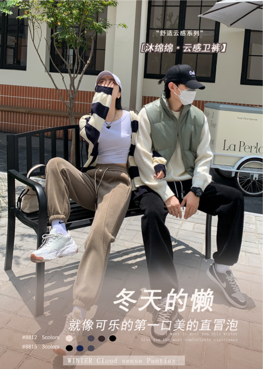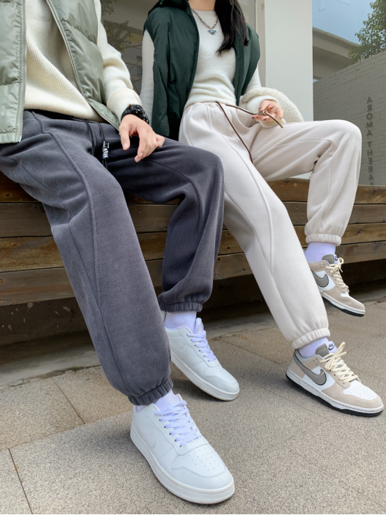 今天推荐的这款云感裤真的很细节啦,设计了束脚款和阔腿款,满足不同身高需求~ 【情侣束脚款】 束脚的设计,不会过于拖沓,又能在视觉上更是延长了小腿的长度。