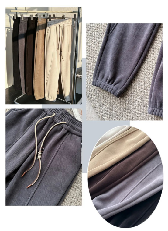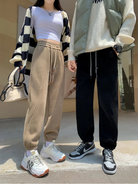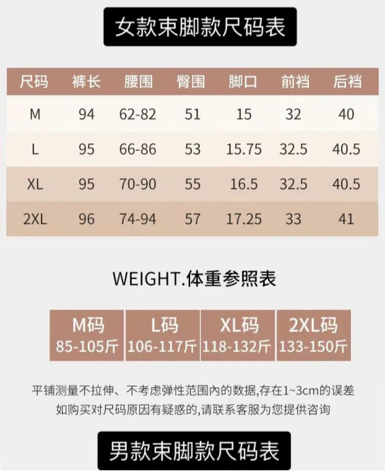 【情侣款束脚】 女款:米色、卡其色、深灰色、黑色、咖啡色(M-2XL) 男款:深灰色、藏青色、黑色(XL- 4XL) 【女束脚裤 米色】