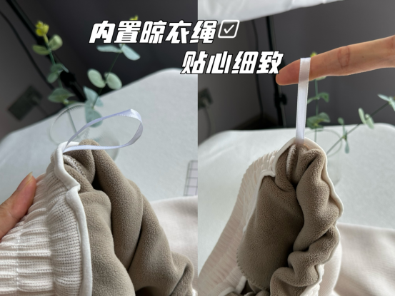 最贴心的是,为了方便晾晒,裤子里面还专门内置了两根晾衣绳,方便晾晒。