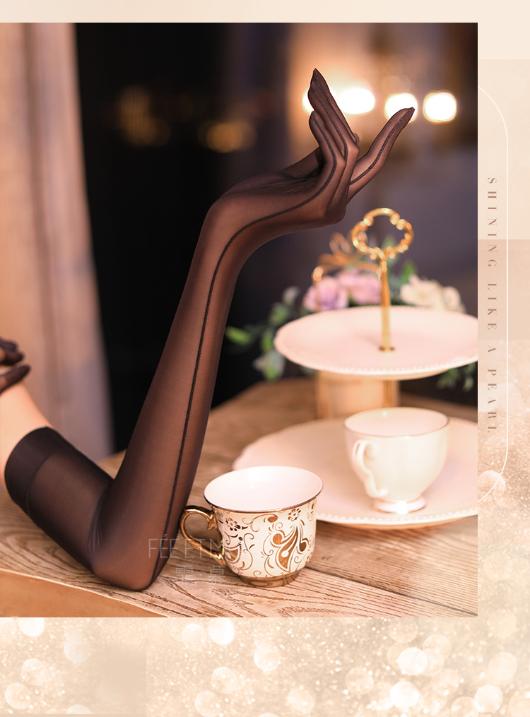 霏慕 超薄超滑高密油亮黑色丝袜 手套 8458 黑丝性感长袖冰丝弹力可拉伸qq