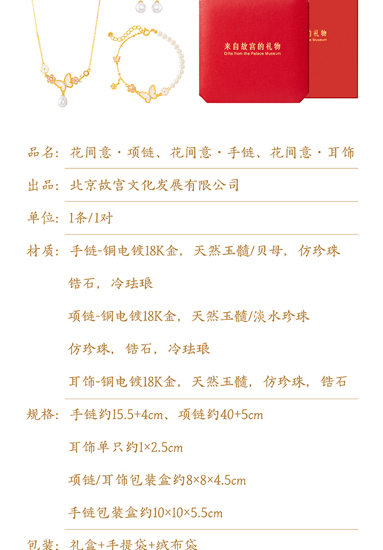 【故宫饰品】花间意蝴蝶手链项链耳饰文创新年情人节生日礼物女生