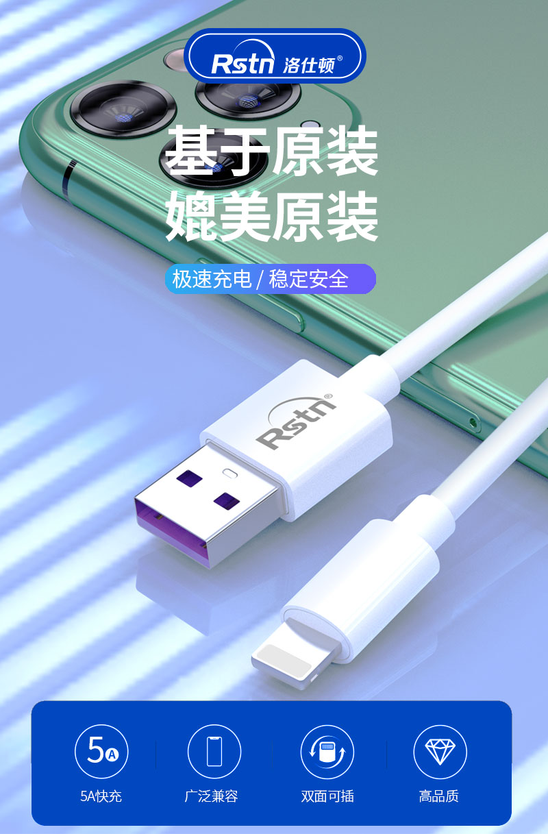 5A洛仕顿闪充数据线 适用于iPhoneX 11 11PRO 12 12 6.1寸手机线