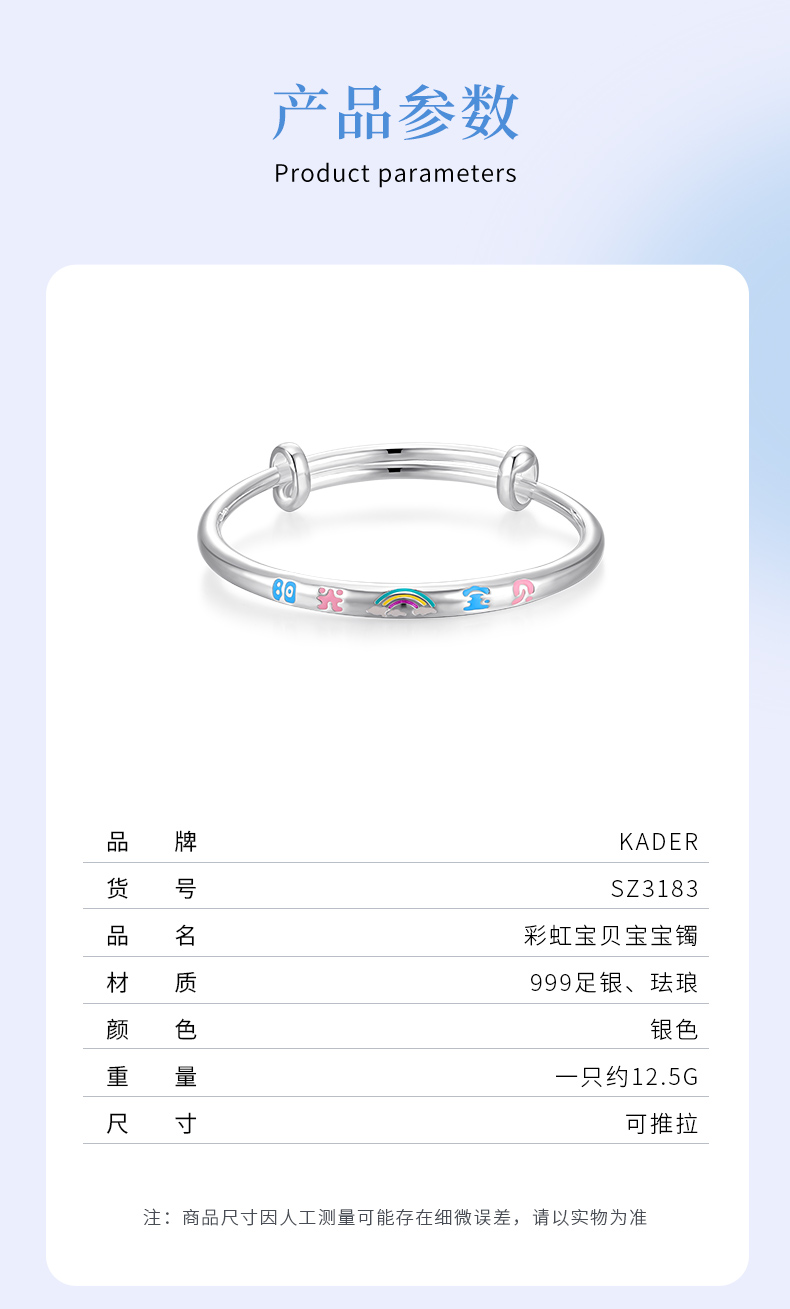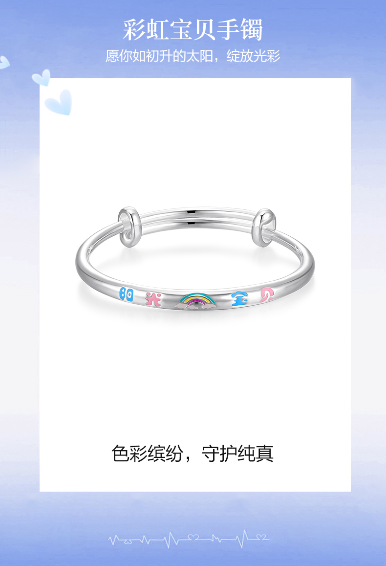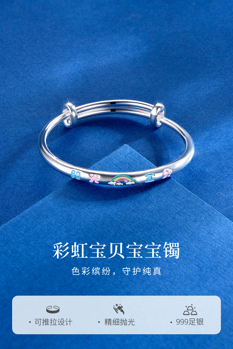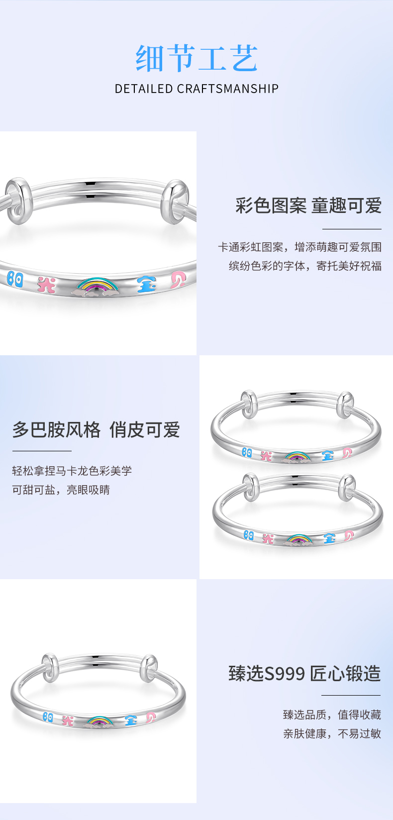 【足银999】卡蒂罗/KADER 彩虹宝贝宝宝镯 蛇年本命年婴儿长命百岁周岁礼 平安喜乐多巴胺配色可爱喜庆