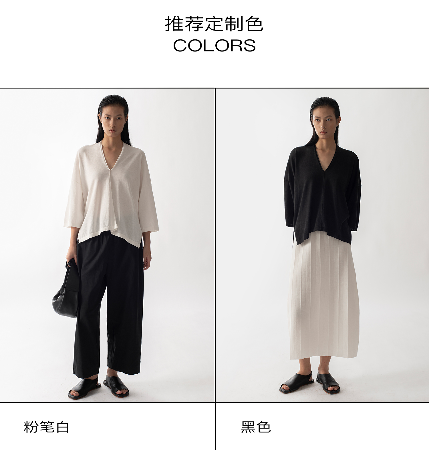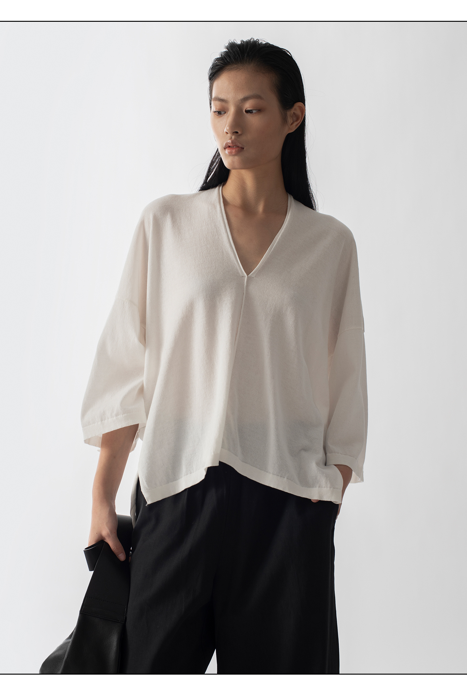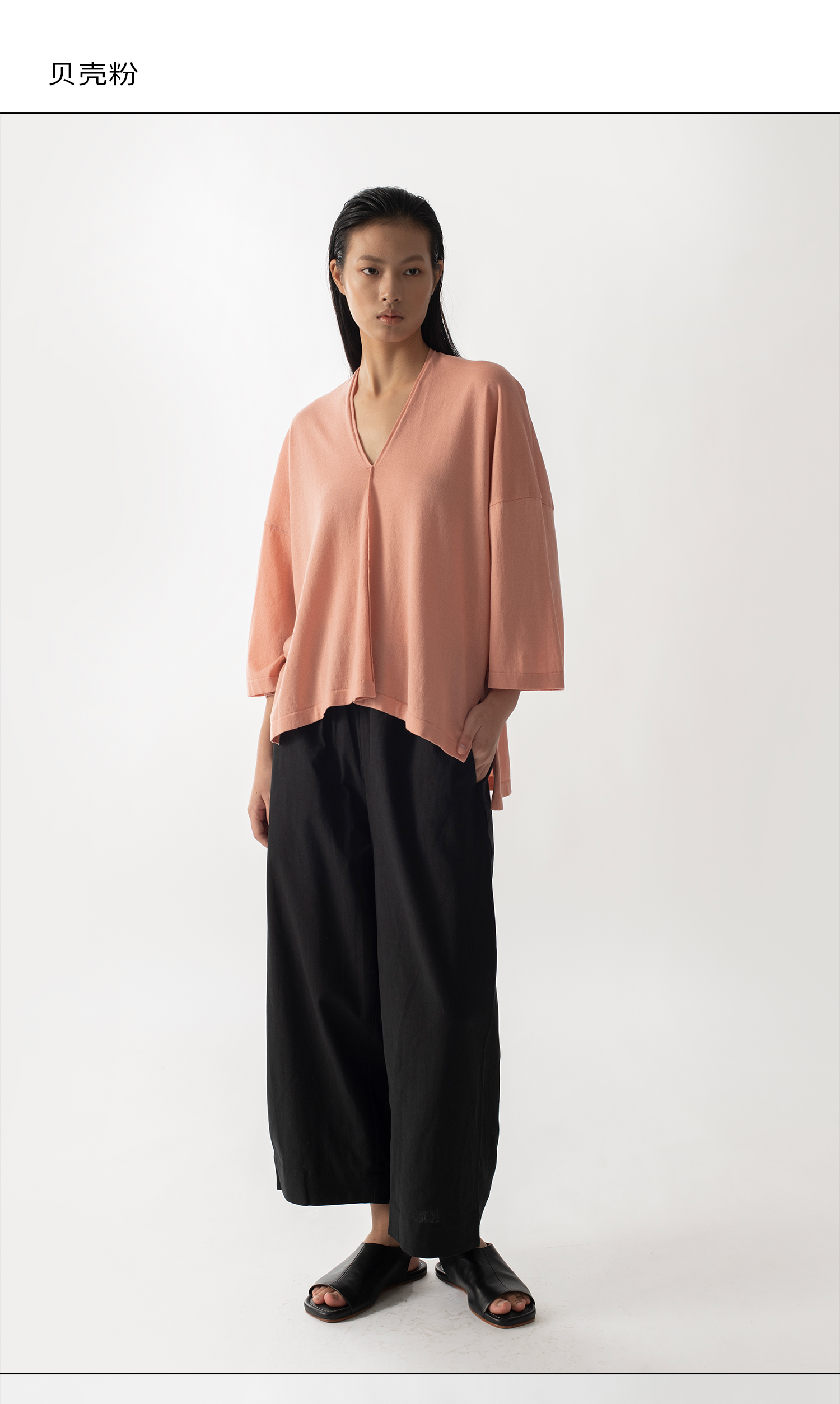 322工房经典再造女士针织薄款套头衫2023夏环保棉后背开襟T恤B100