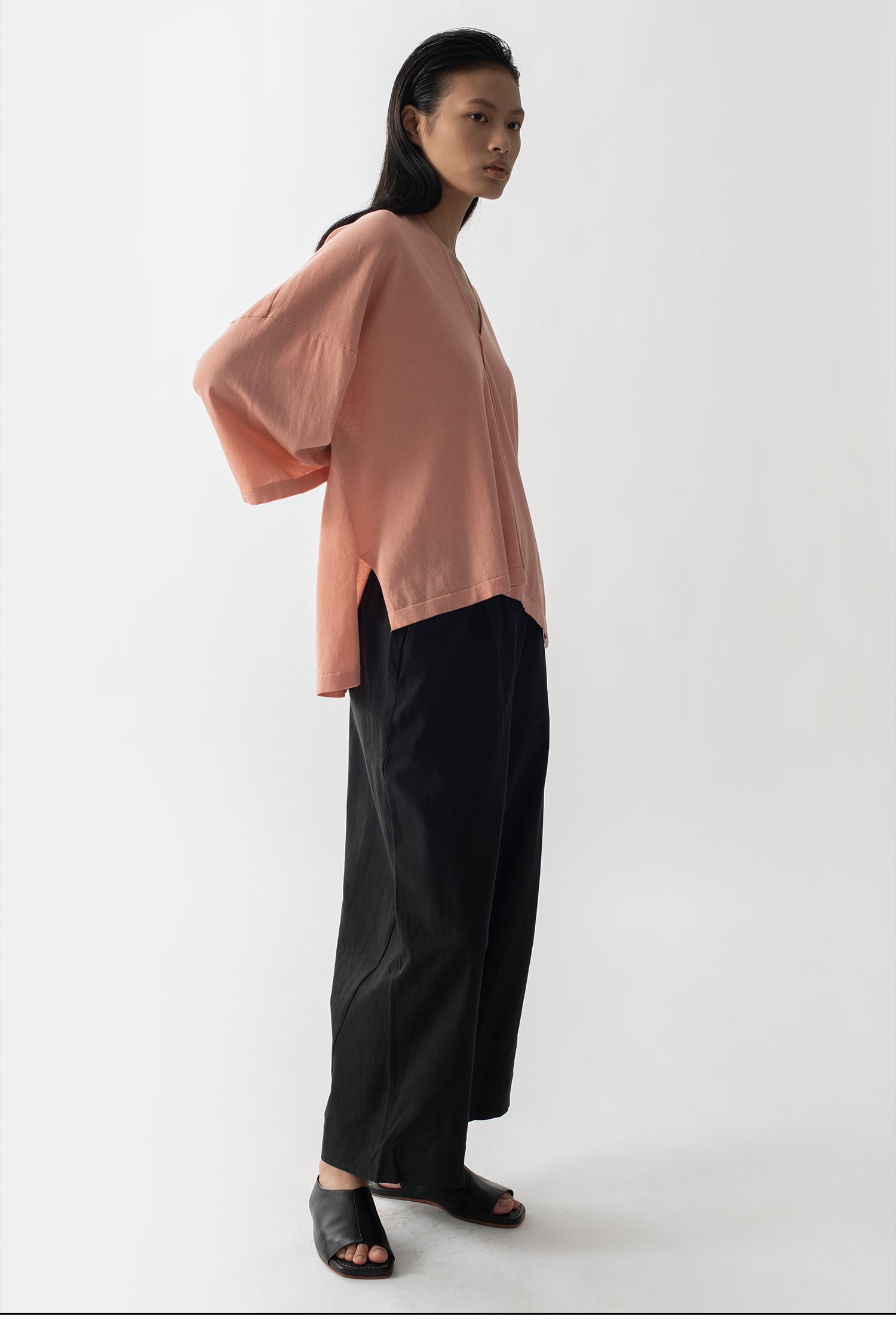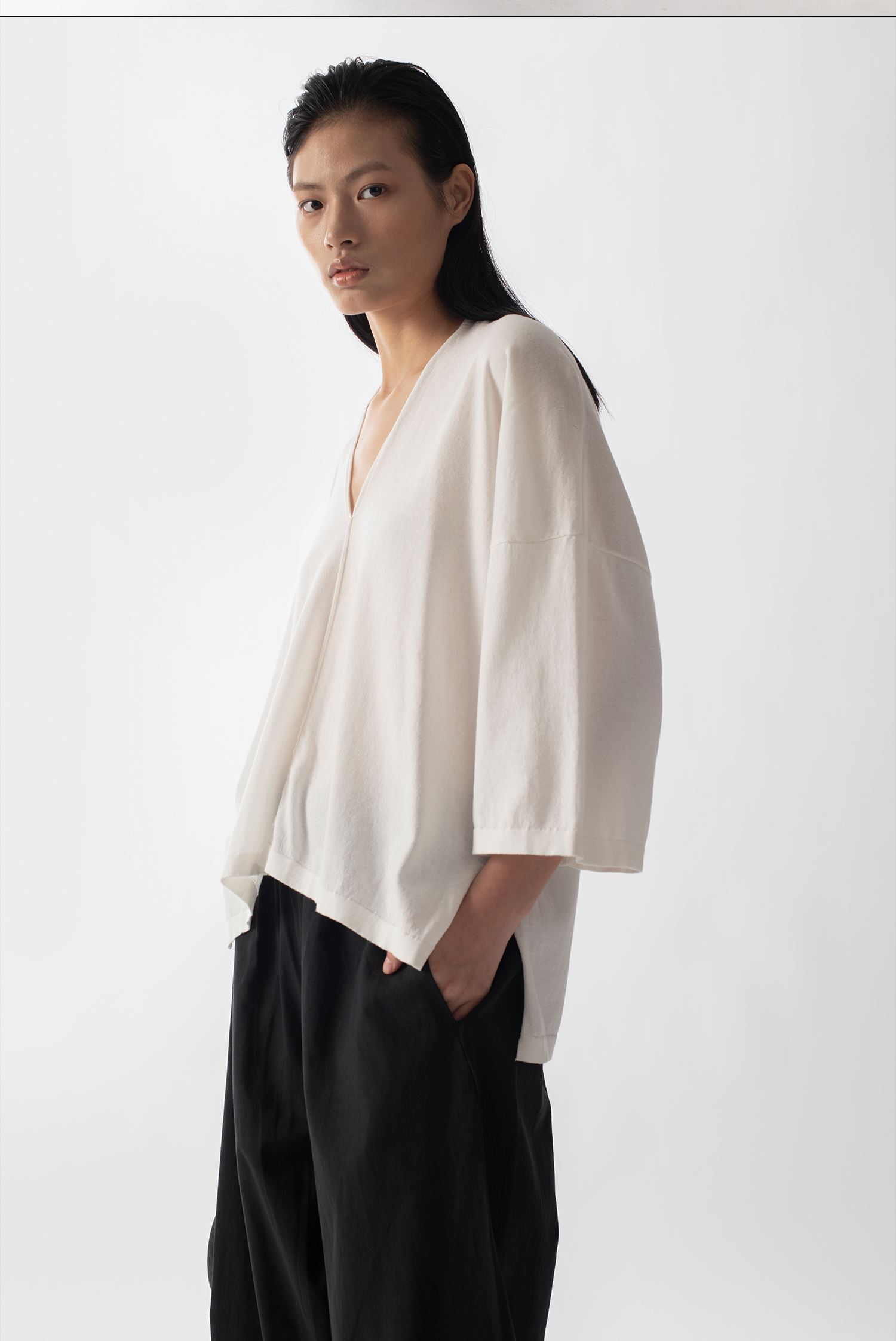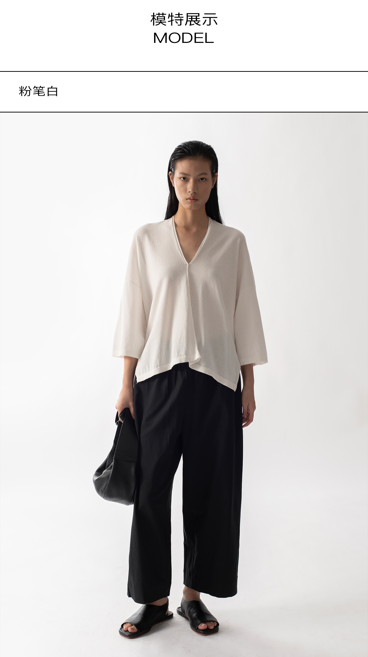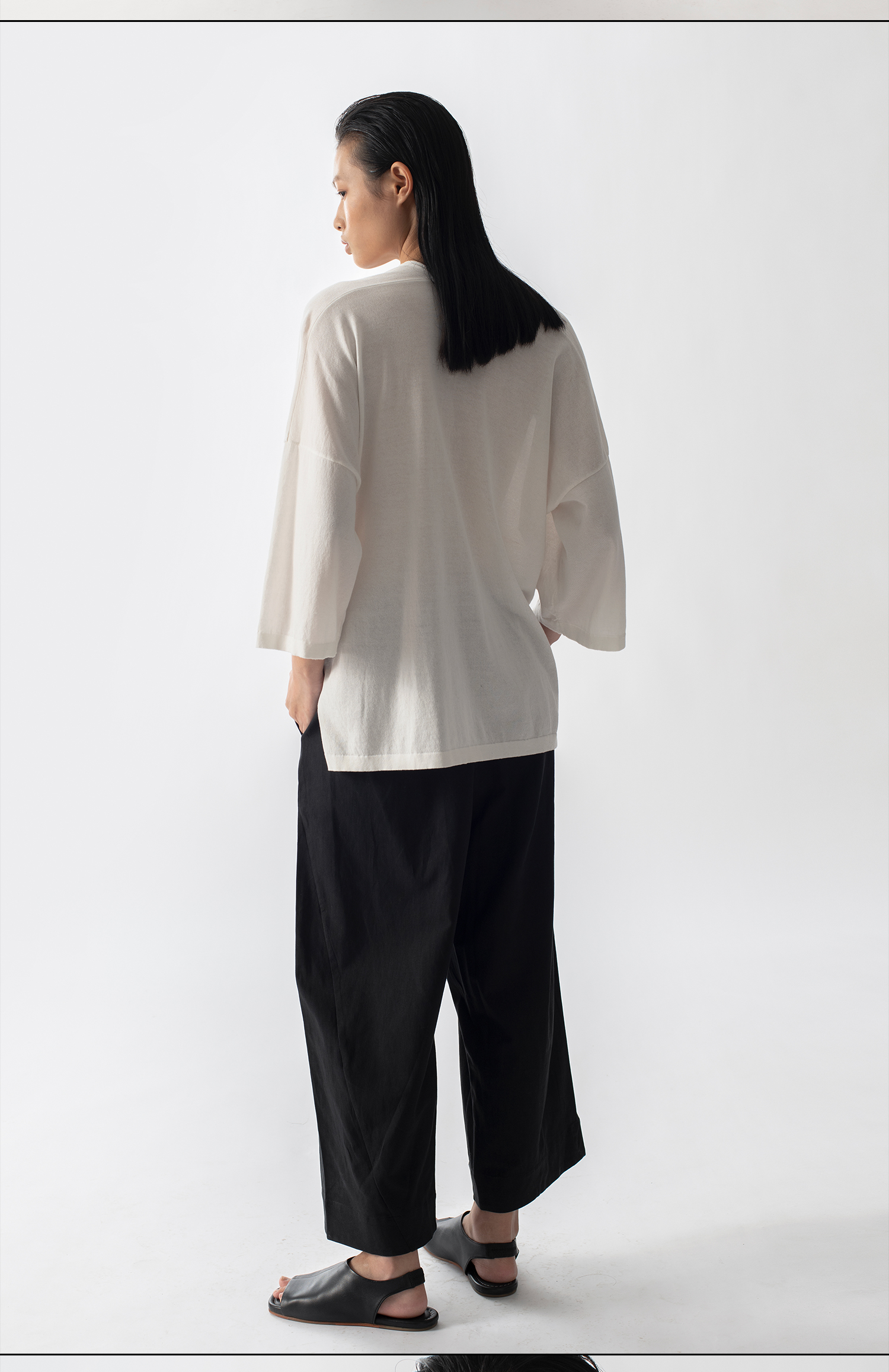 322工房经典再造女士针织薄款套头衫2023夏环保棉后背开襟T恤B100