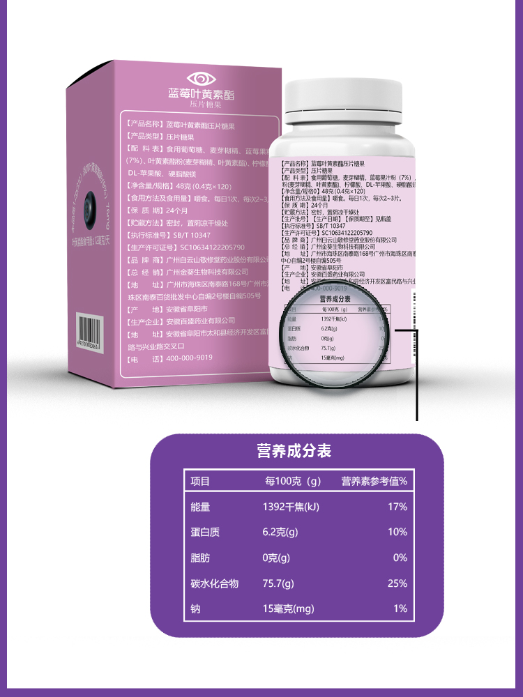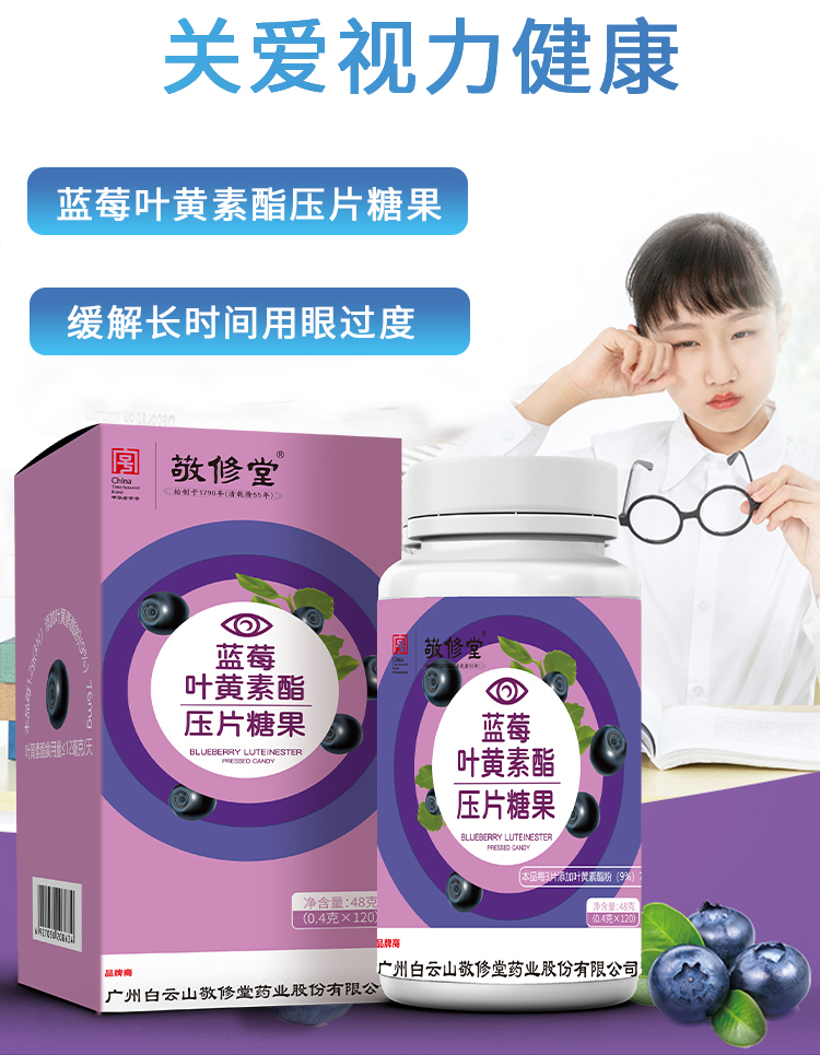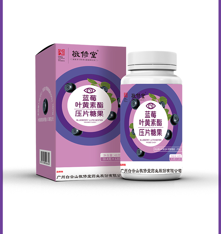 【白云山敬修堂蓝莓叶黄素压片糖果】视力疲劳、中老年视力保护,儿童青少年护眼,叶黄素护眼片120粒!